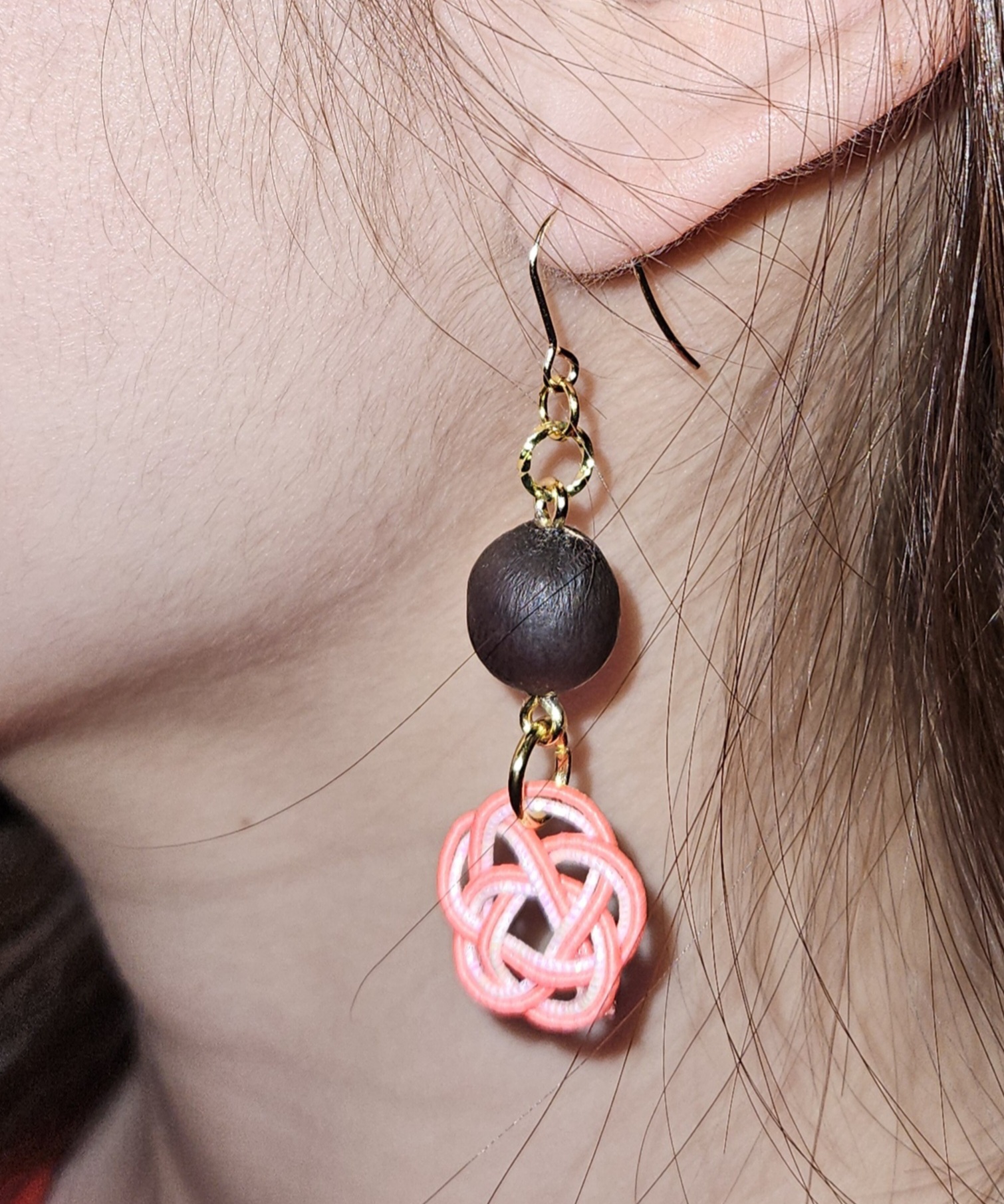 Zoomで映える!!クリアなピンクフラワーと揺れるビーズのアクセサリー(イヤリング)
