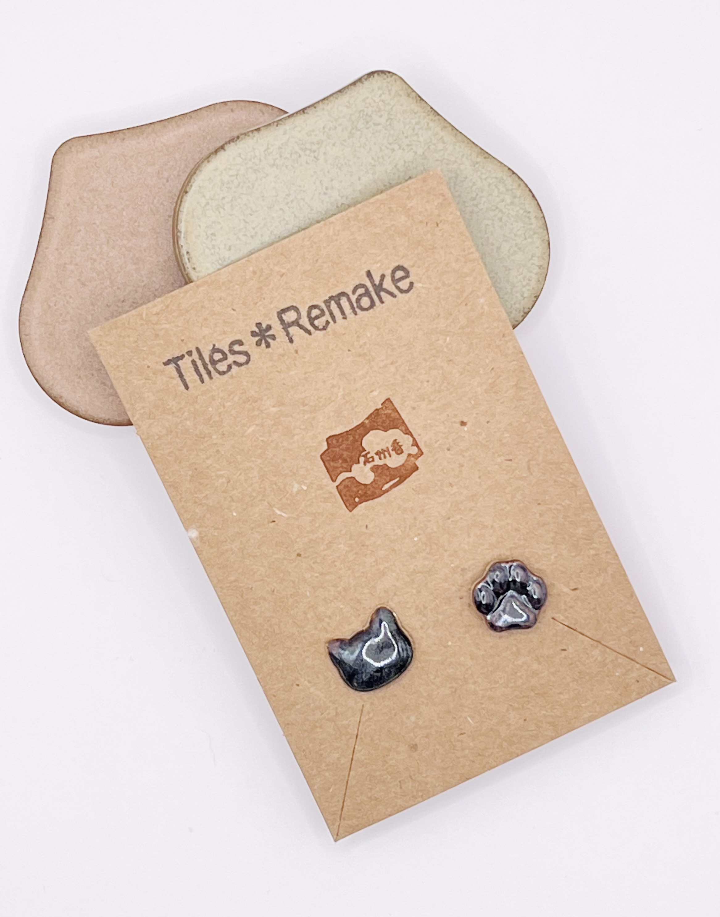 石州瓦のやきもの 猫のピアス(茶)