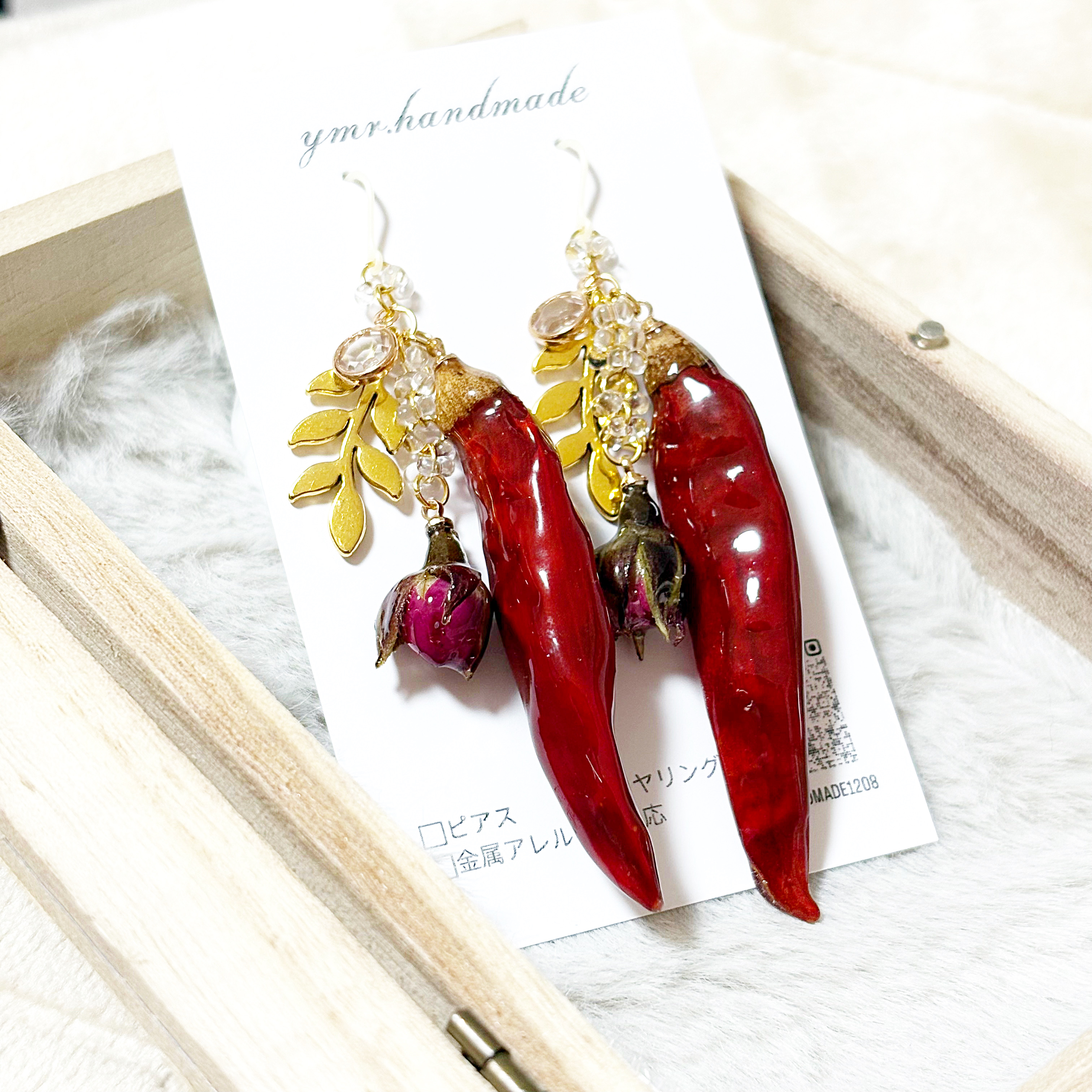 唐辛子and薔薇/自然素材ピアス
