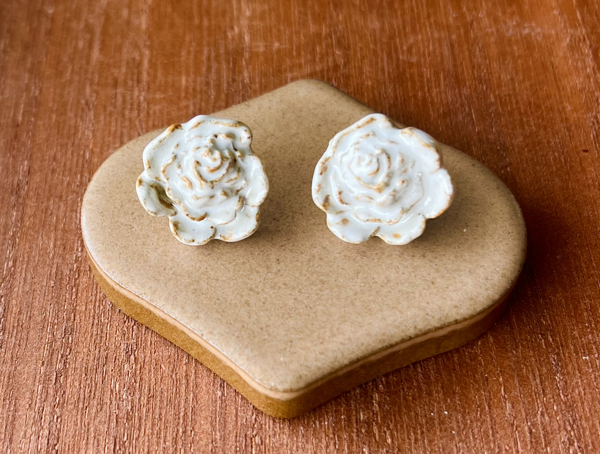 石州瓦のやきもの 白薔薇のピアス