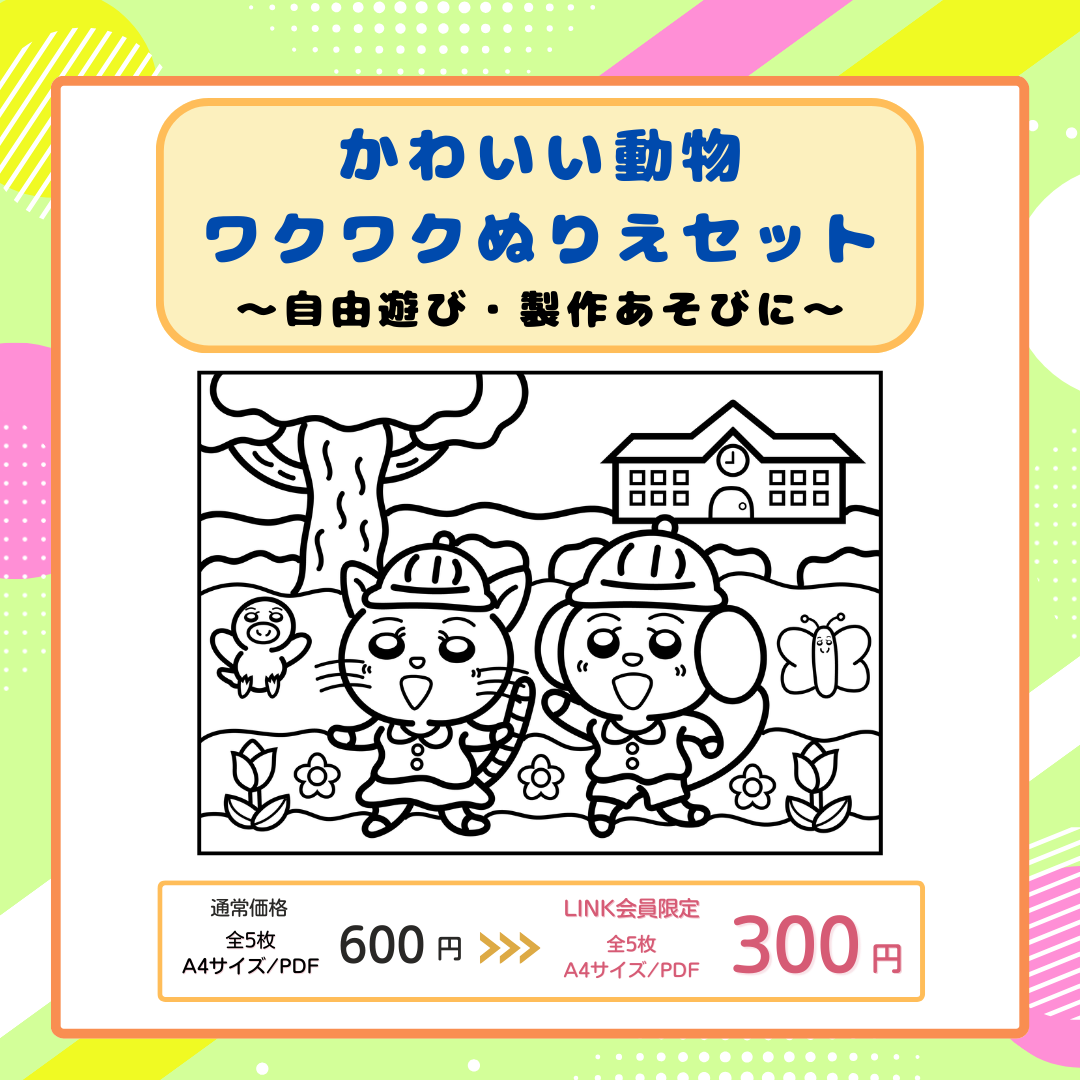 ワクワクぬりえ5枚セット|動物|保育園・幼稚園で使える(PDF)