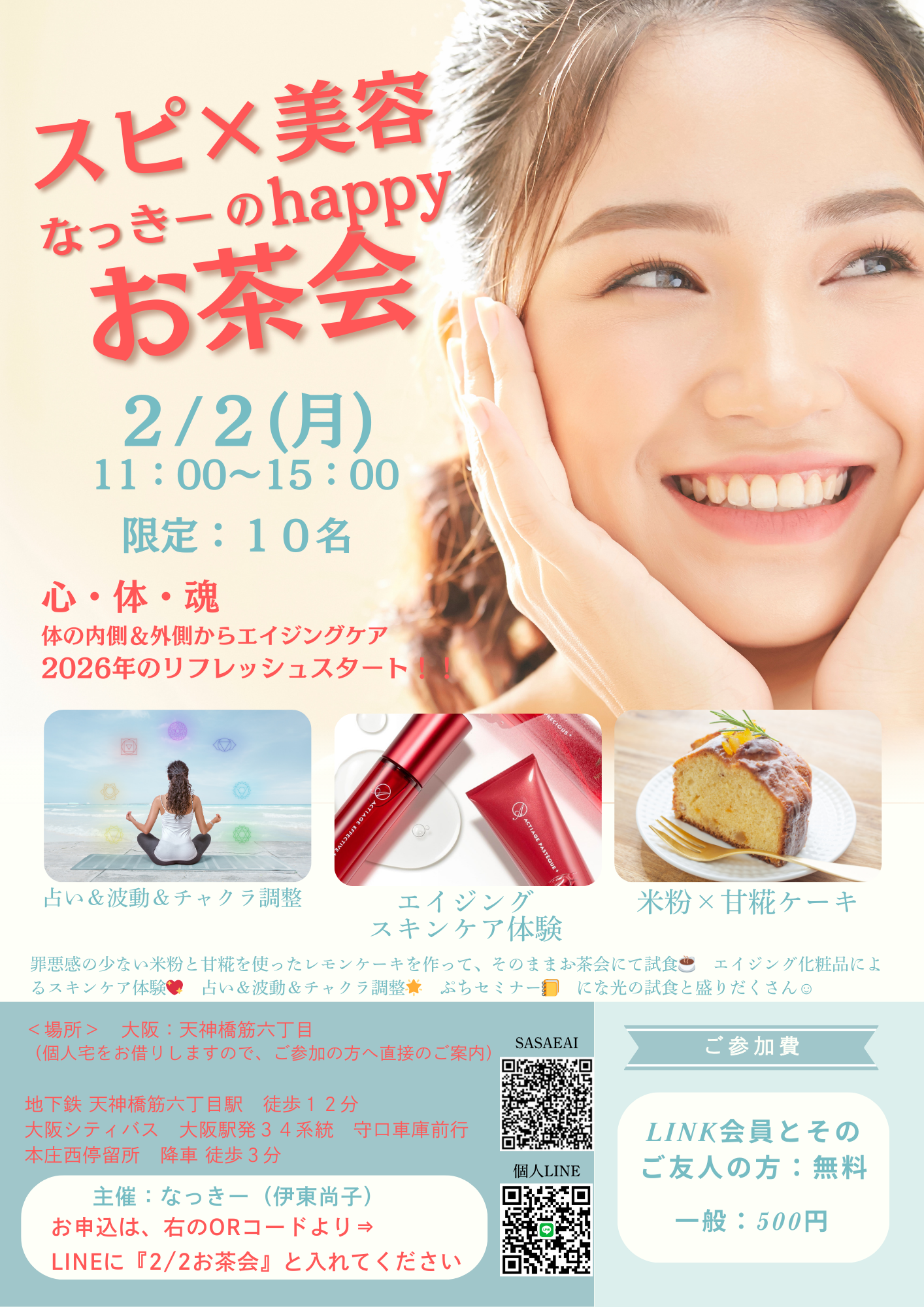 2/2(月)11時~【1回で驚きの体感!】スピ✖️美容 なっきーのhappyお茶会 ~心と体と魂が整う~