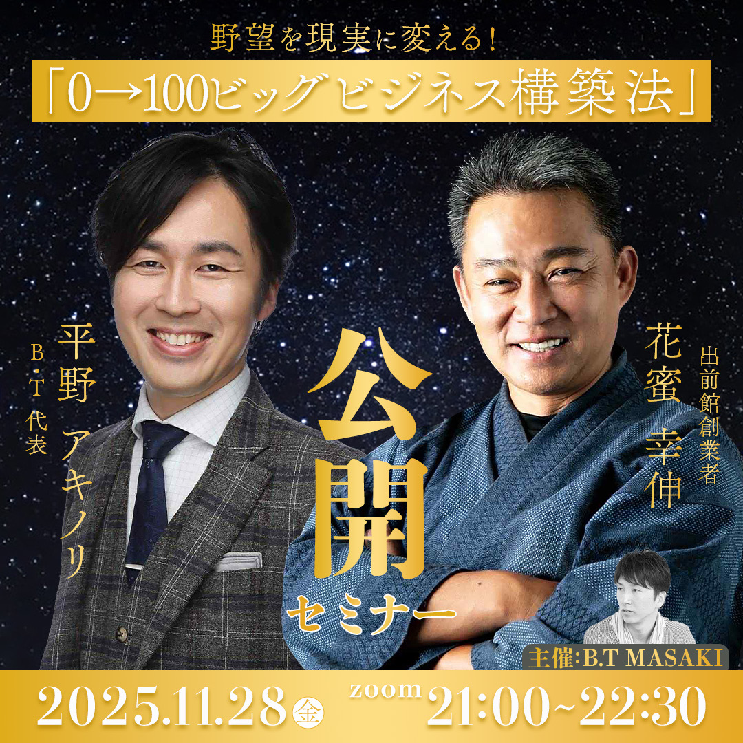 野望を現実に変える!「0→100ビックビジネス構築法」公開セミナー
