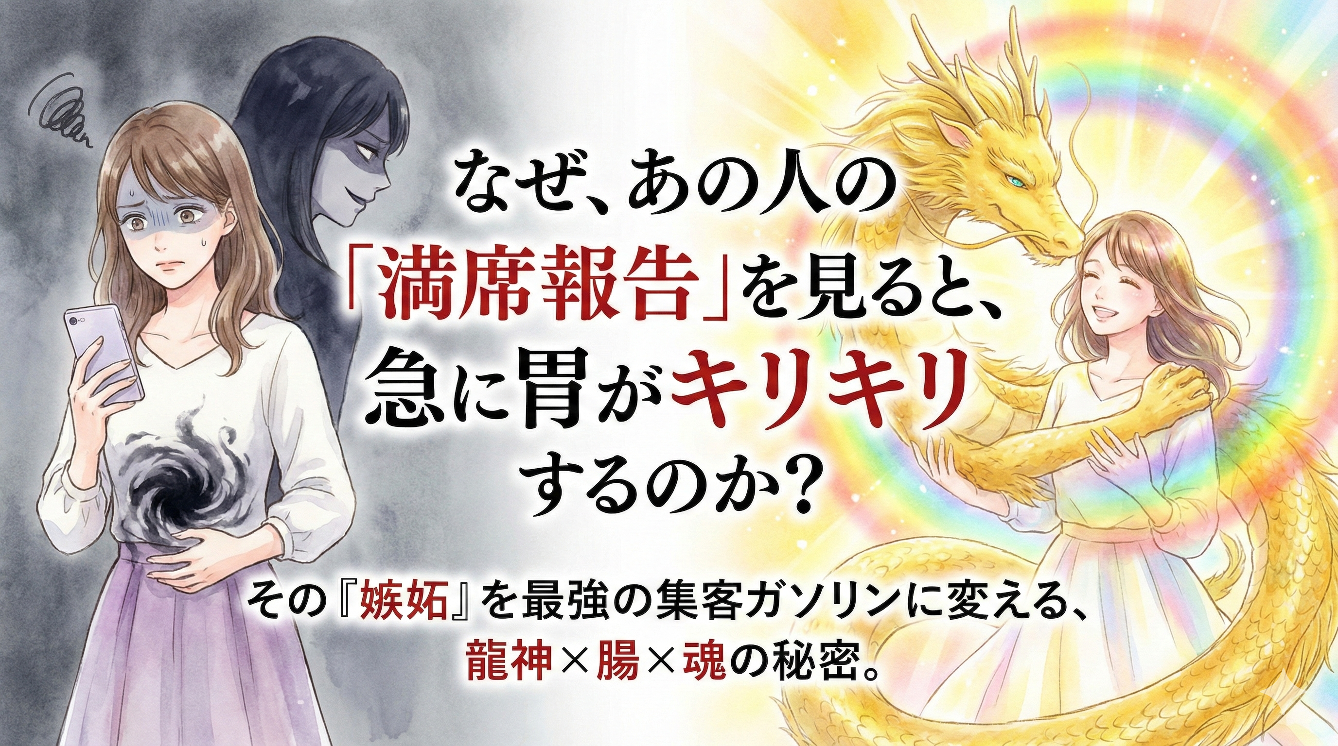 あなたの嫉妬心は 才能の証拠です。 他人の成功を 羨むエネルギーを 龍神の力で あなた自身の 「集客力」へ 強制変換します。