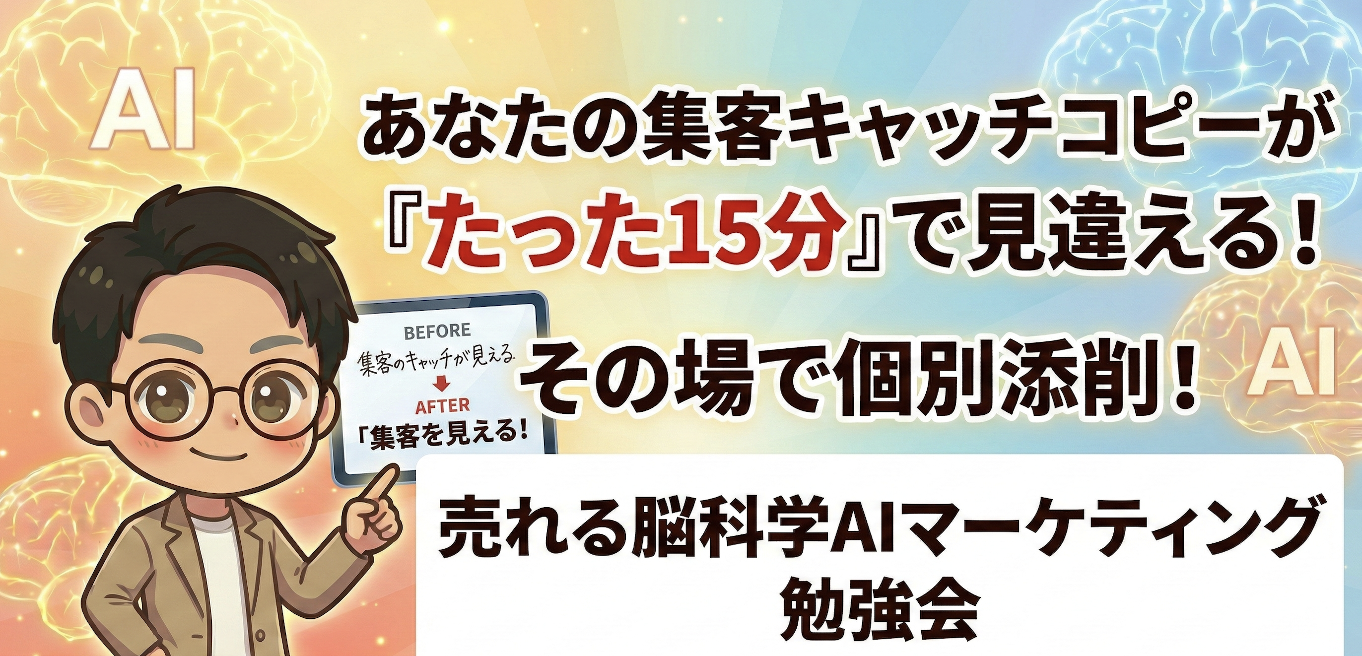 あなたの集客キャッチコピーが『たった15分』で見違える!その場で個別添削! 売れる脳科学AIマーケティング勉強会