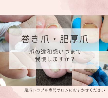 つらい巻き爪、隠したくなる肥厚爪を 健康的な爪へ導くお手伝いをするサロン