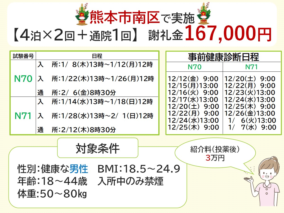 ※健康な方から優先的に参加いただきます。事前健康診断及び宿泊前は体調を整えての来院お願いします。