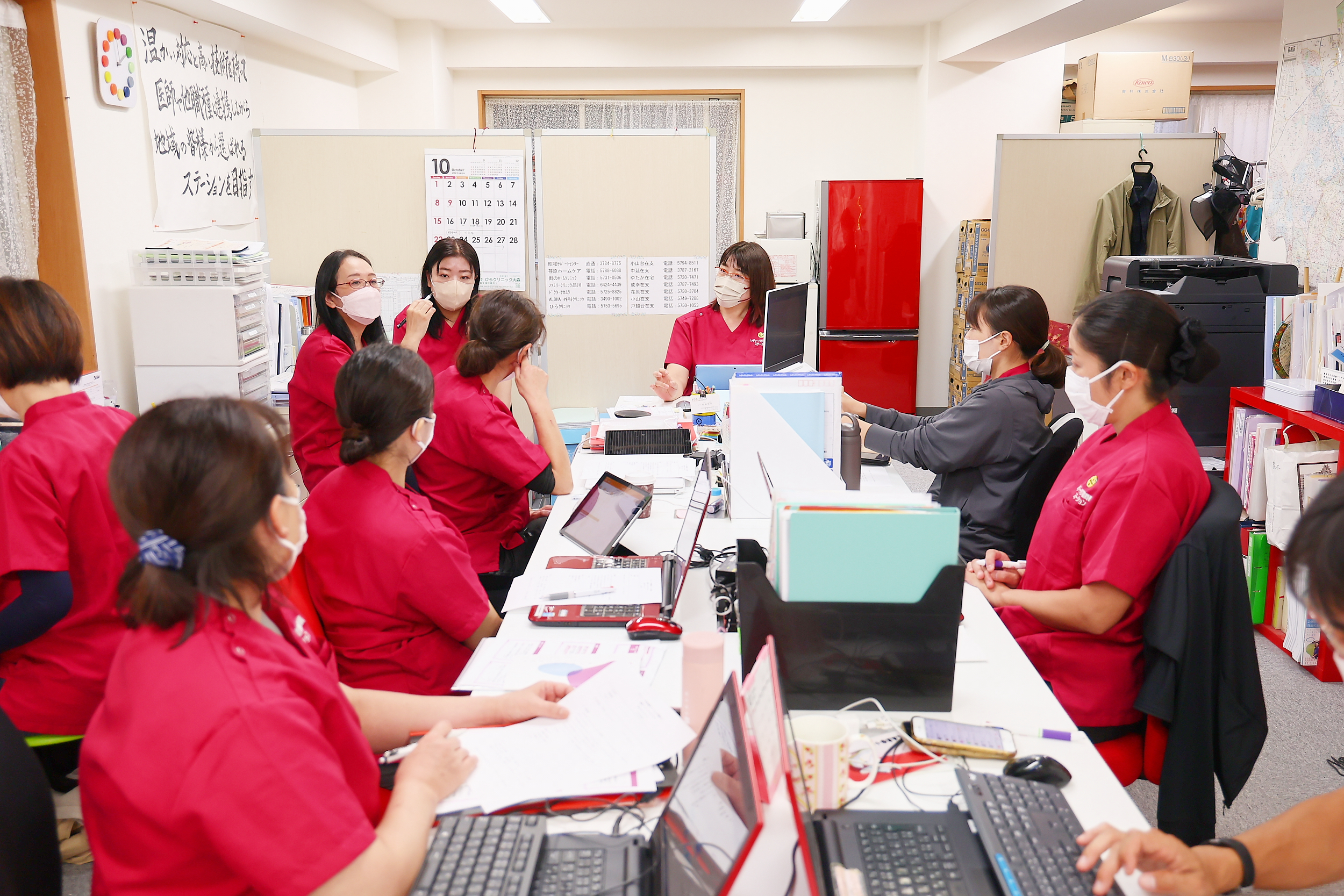 介護保険などで在宅療養への看護提供をメインにしており、その中で歩行訓練などで利用者様の在宅での生活保持(トイレまで歩くなど)をリハビリで援助してもらいます