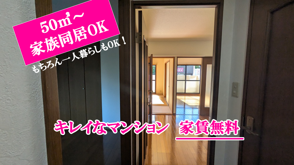 ・50㎡のキレイなマンション 家賃無料(家族同居OK)