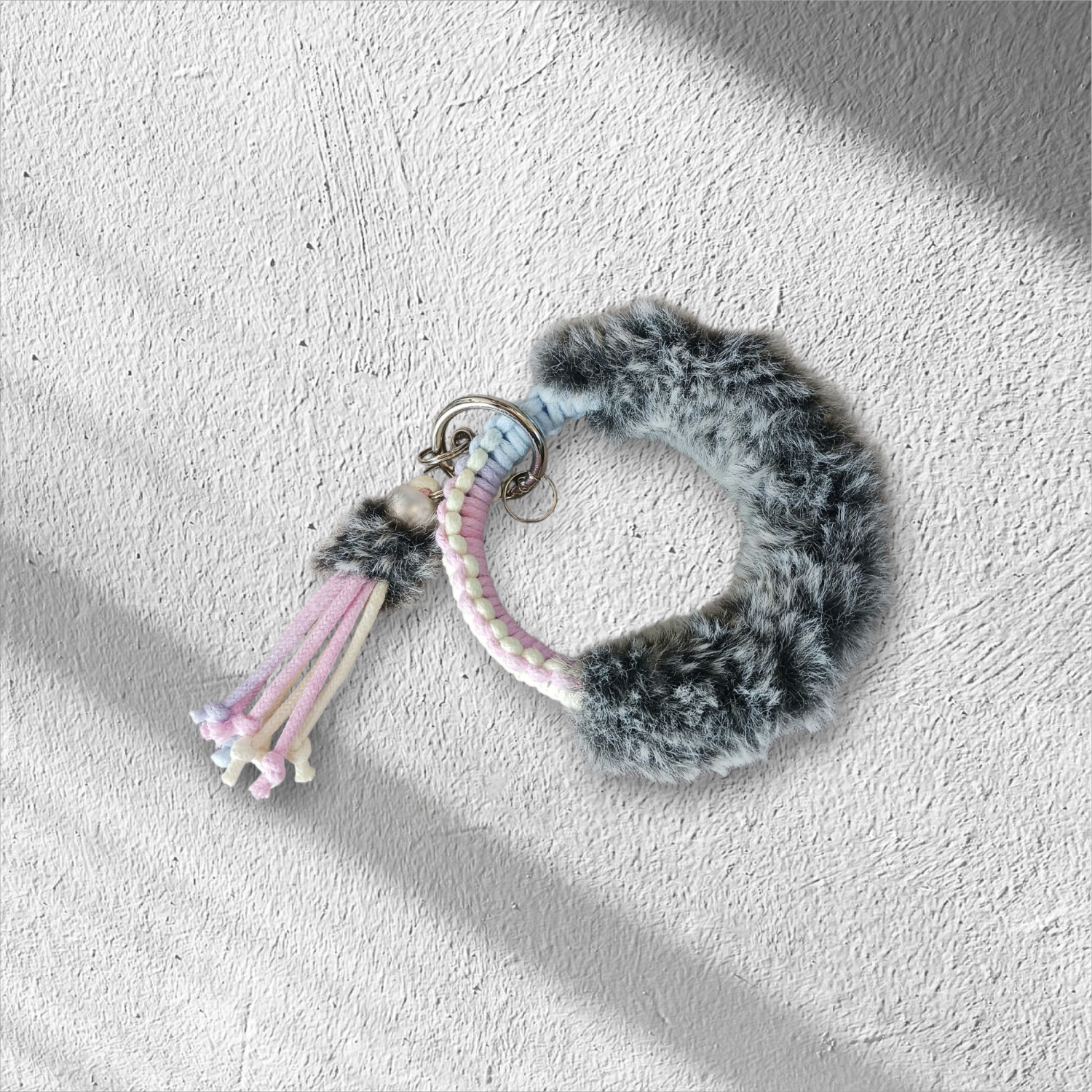 ふわもこハンドストラップグレー×パステル【Scrapfun】