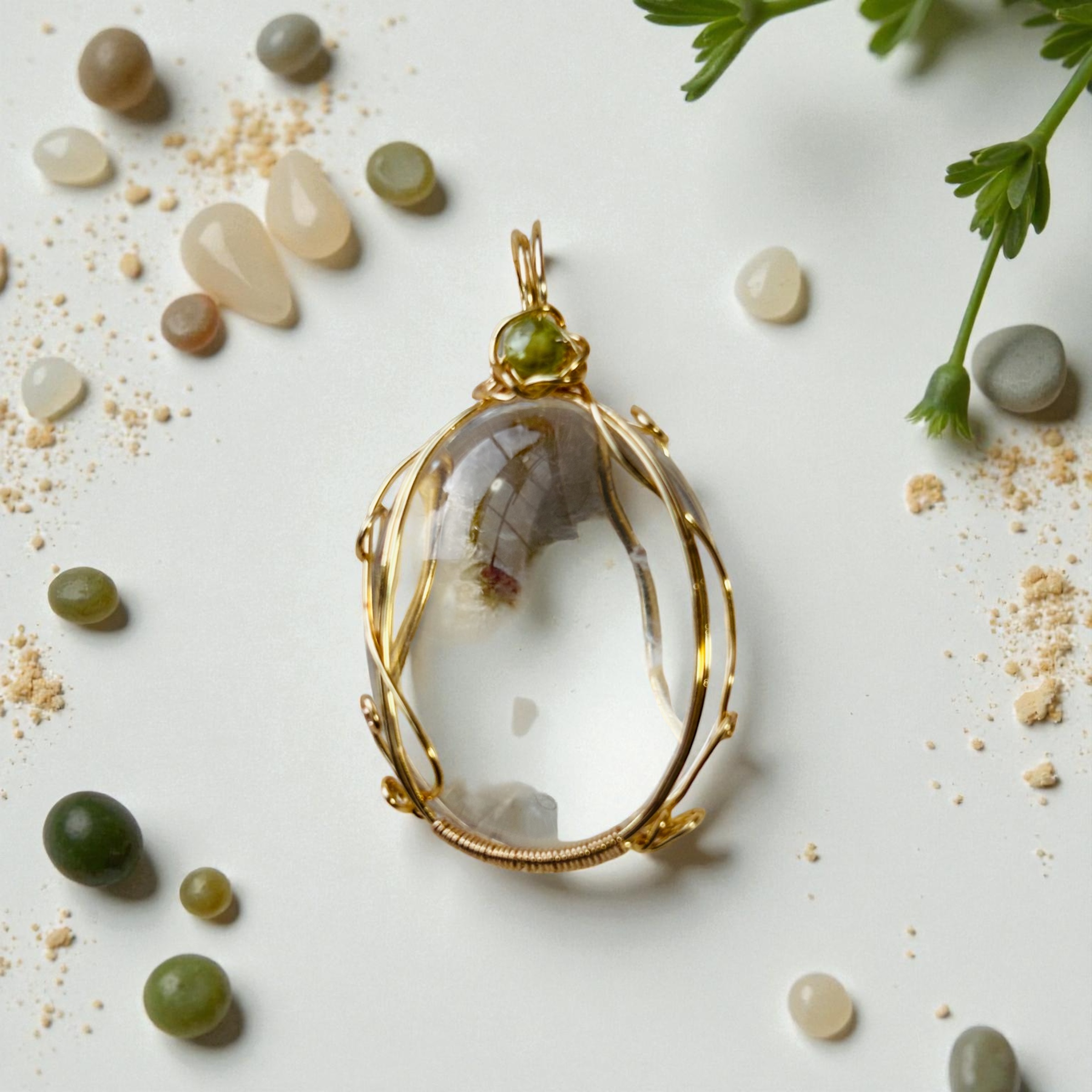 オーバル型天然水晶 クリスタルペンダント(ペリドット付き)レイキアチューメント