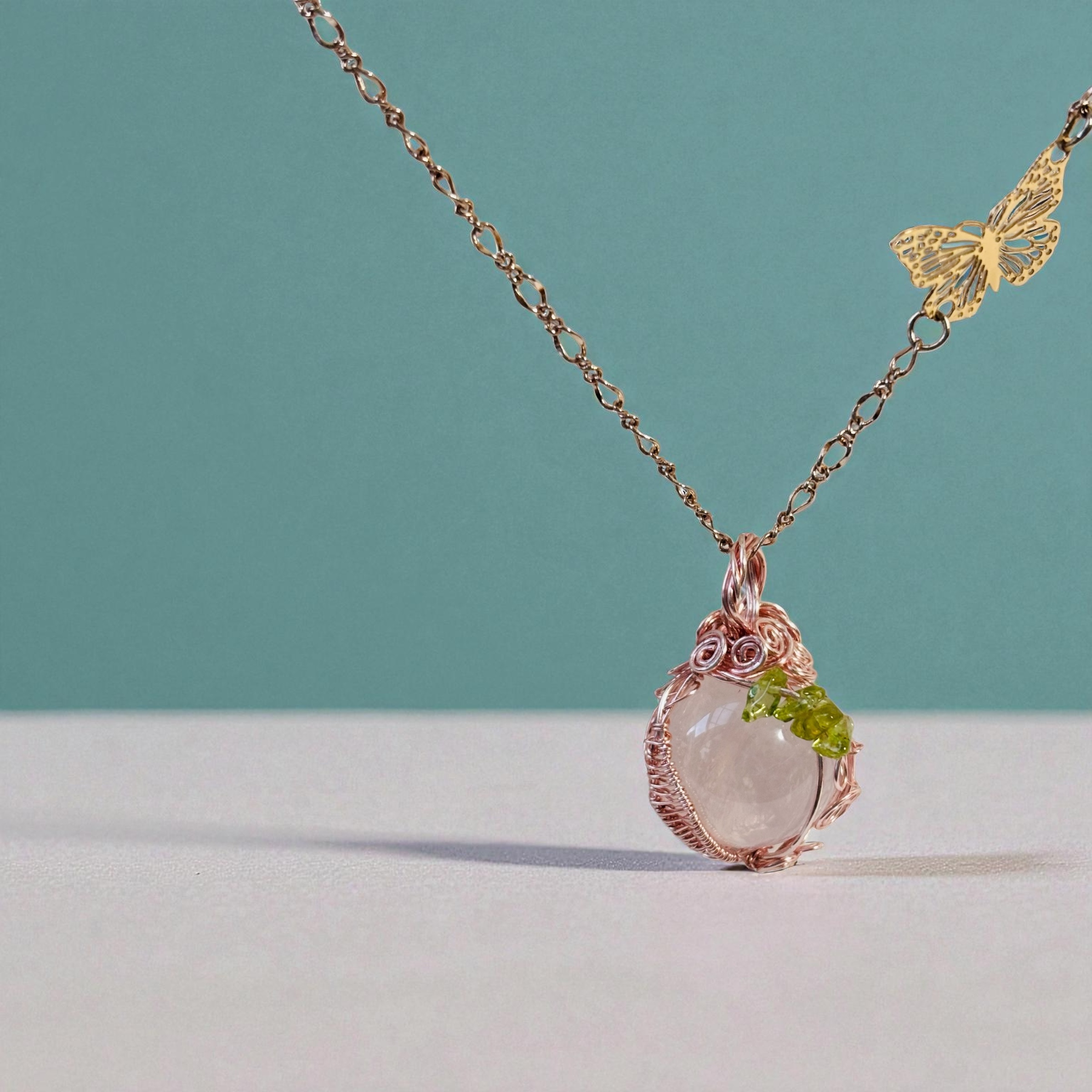 ローズクォーツ とペリドットのペンダントヘッド レイキアチューメント付き