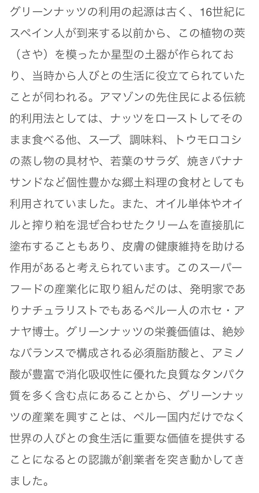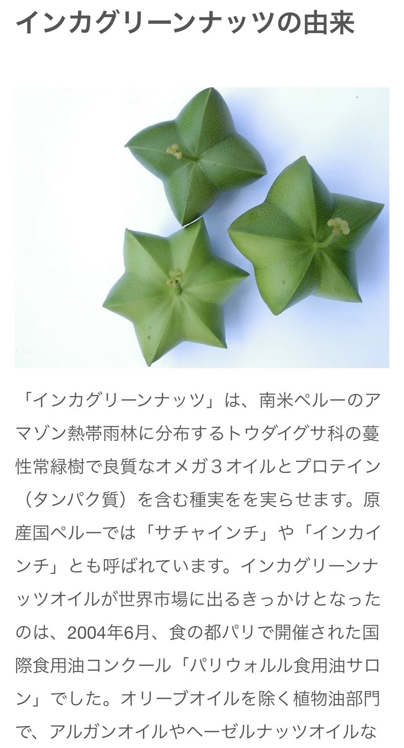 | 原材料名 | サチャインチ種子(ペルー) |