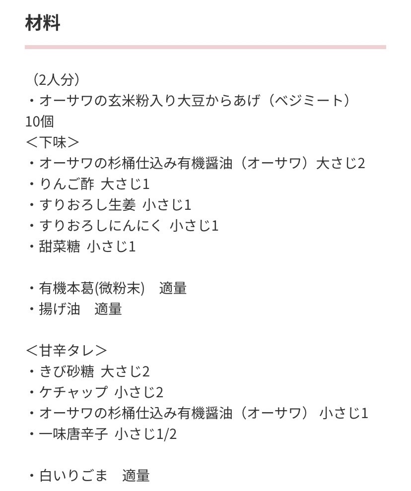 | 名称 | オーサワの玄米粉入り大豆カラアゲ(ベジミート) |