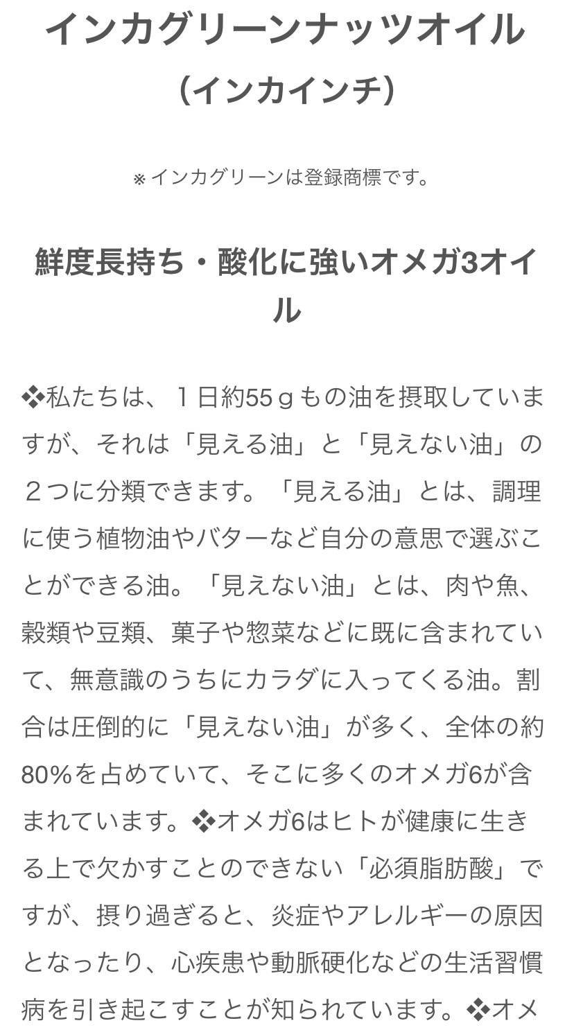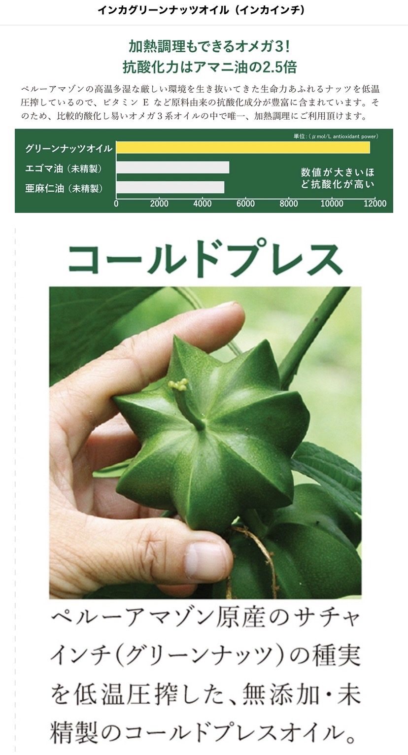 | 名称 | オーガニック インカグリーンナッツオイル |