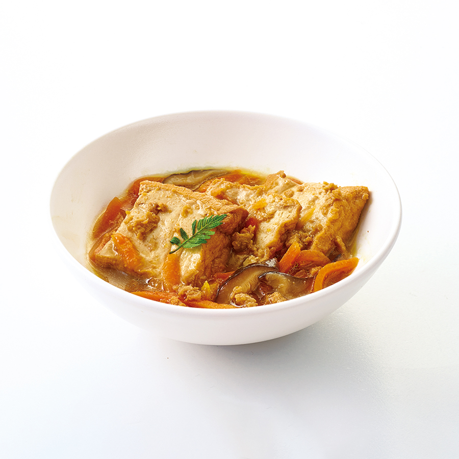 | 原材料名 | 厚揚げ[大豆(国産)]、オーサワそのまま使えるべジミート(畑の肉)、特別栽培にんじん(国産)、椎茸(国産)、醤油、醗酵調味料、メープルシュガー、なたね油、馬鈴薯でん粉、おろし生姜[生姜(国産)]、食塩(海の精)、酵母エキス |