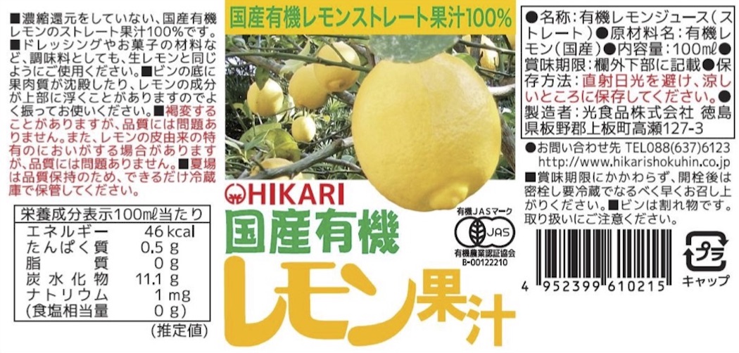 | 名称 | 国産有機レモン果汁 |