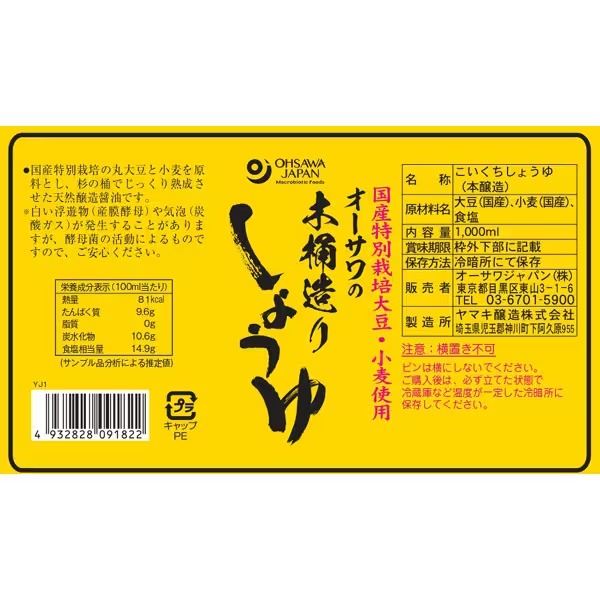 | 原材料名 | 特別栽培大豆(北海道、青森・秋田県他)、特別栽培小麦(埼玉・群馬県他)、食塩(天塩) |