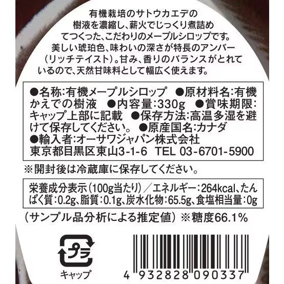 | 名称 | オーサワの有機メープルシロップアンバー(リッチテイスト)瓶 |