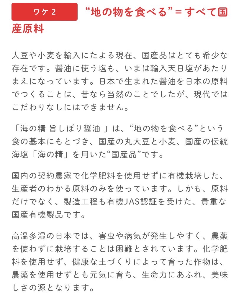 | 名称 | 海の精 国産有機・旨しぼり醤油 |