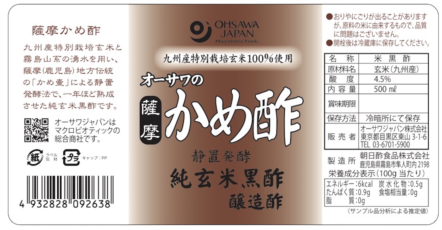 | 名称 | オーサワの薩摩かめ酢(純玄米黒酢) |
