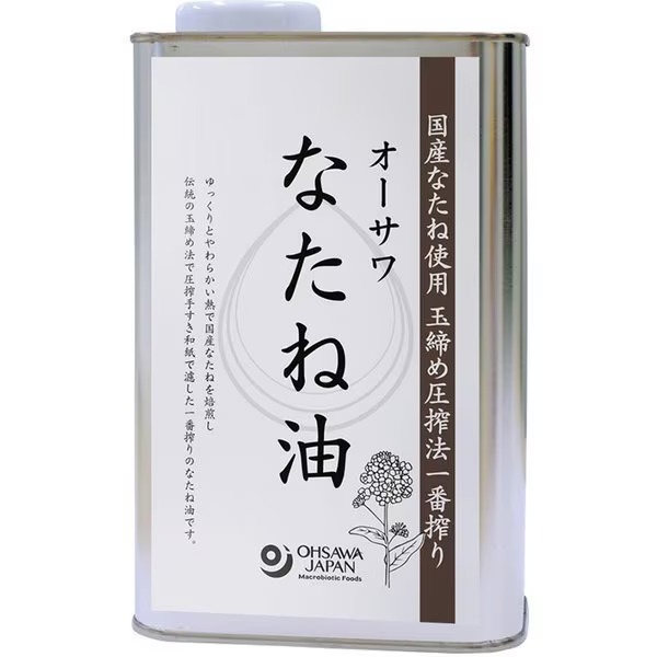 「オーサワなたね油」は、国内の農薬不使用栽培のなたねを原料に、手間暇かけて搾り出す伝統製法「玉締め圧搾法」でつくる大変希少なものです。また「玉締め圧搾法」の油は、素材の風味と香りが引き立つため、なたね特有の芳醇な香りとコクが味わえます。