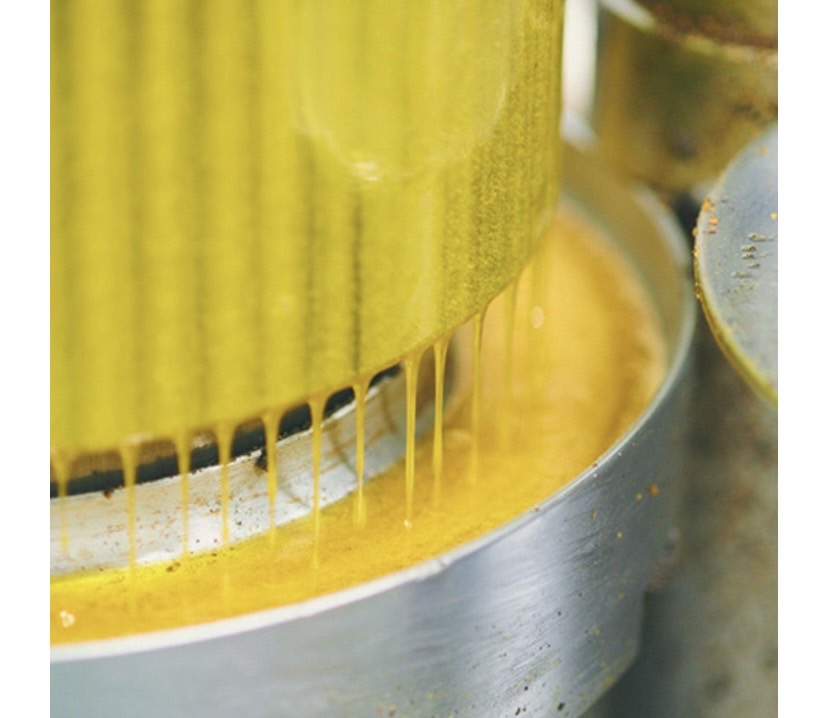 菜の花の種子を原料とする、美しい黄金色をしたなたね油。