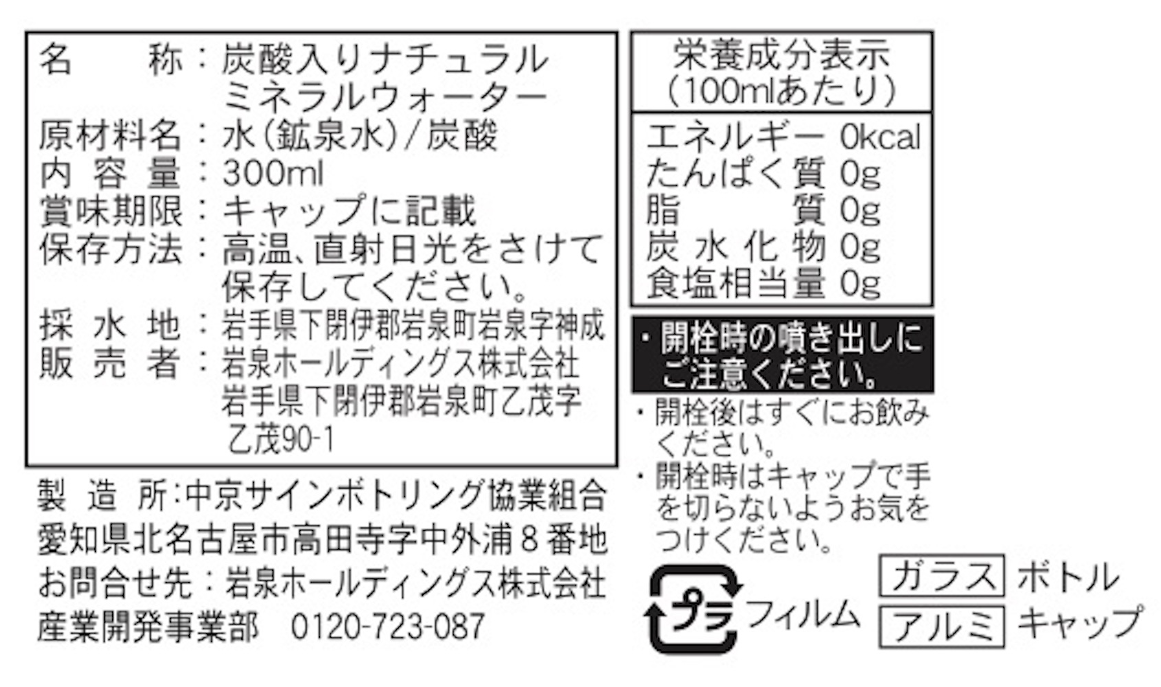 | 原材料名 | 水(鉱泉水:岩手県)/炭酸 |