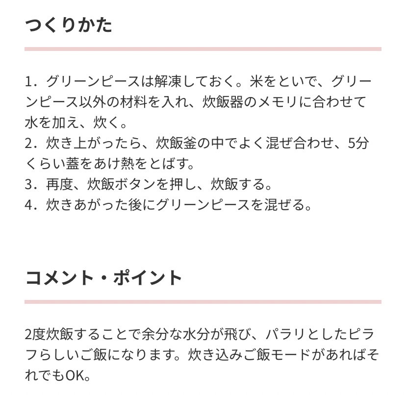 | 調理方法 | カレーの作り方(参考例)5皿?6分〔材料〕カレールウ120g 玉葱1個 じゃがいも1個 人参1本 水600? 1, 厚手の鍋に油を熱し、一口大に切った野菜を入れて良く炒めます。2,1, に水を加えて加熱し、沸騰したら材料が柔らかくなるまで煮込みます。3,一度火を止めてからルウを入れ、溶かします。4,再び火をつけ、弱火でかき混ぜながら5分程煮込むと出来上がりです。 |