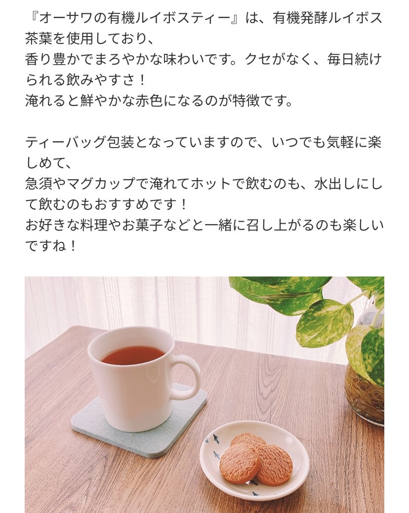 | 原材料名 | 有機ルイボス(南アフリカ共和国) |