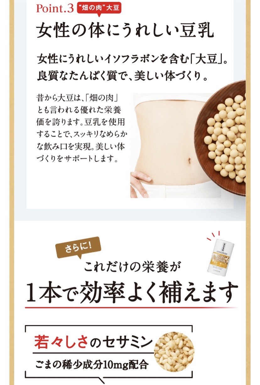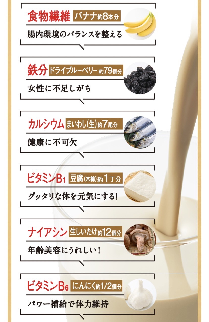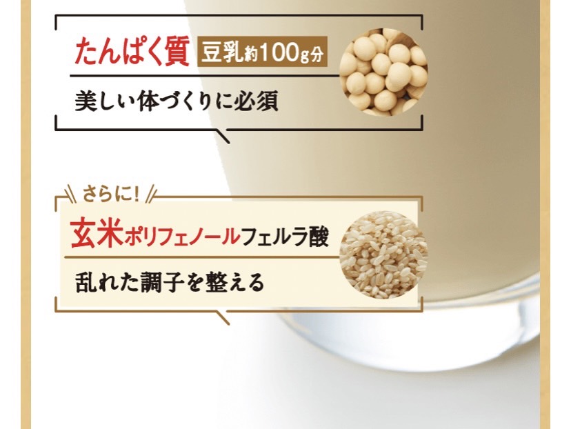 | 原材料名 | 豆乳、米ぬか(国産)、きび糖(鹿児島・沖縄・香川県)、ごま(パラグアイ、グァテマラ、アメリカ他)、食物繊維、海藻カルシウム、茶(緑茶・抹茶)/セルロース、乳化剤、安定剤(増粘多糖類) |