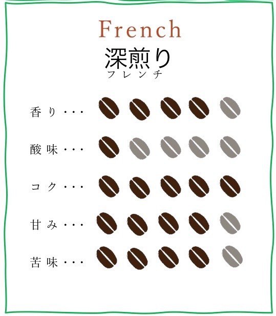 焙煎: 深煎り(一般的な苦味をお好みな方向け)フレンチ