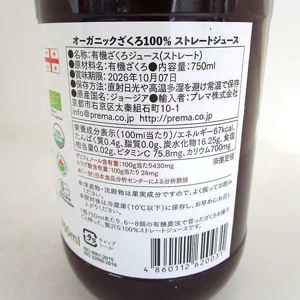 | 原材料名 | 有機ざくろ(ジョージア) |