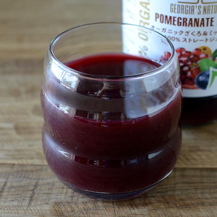 自然に恵まれたジョージア大地のエネルギーが凝縮された有機ザクロを、水も砂糖も一切加えず、ベリーを主とした有機フルーツを加え、コールドプレス製法で100%ストレートジュースに仕上げました。