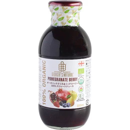 コーカサス山脈の南麓、8000年の歴史があるワイン発祥の地、オーガニック先進国でもある、 ジョージア産の有機ざくろ&有機フルーツ100%のストレートジュースです。