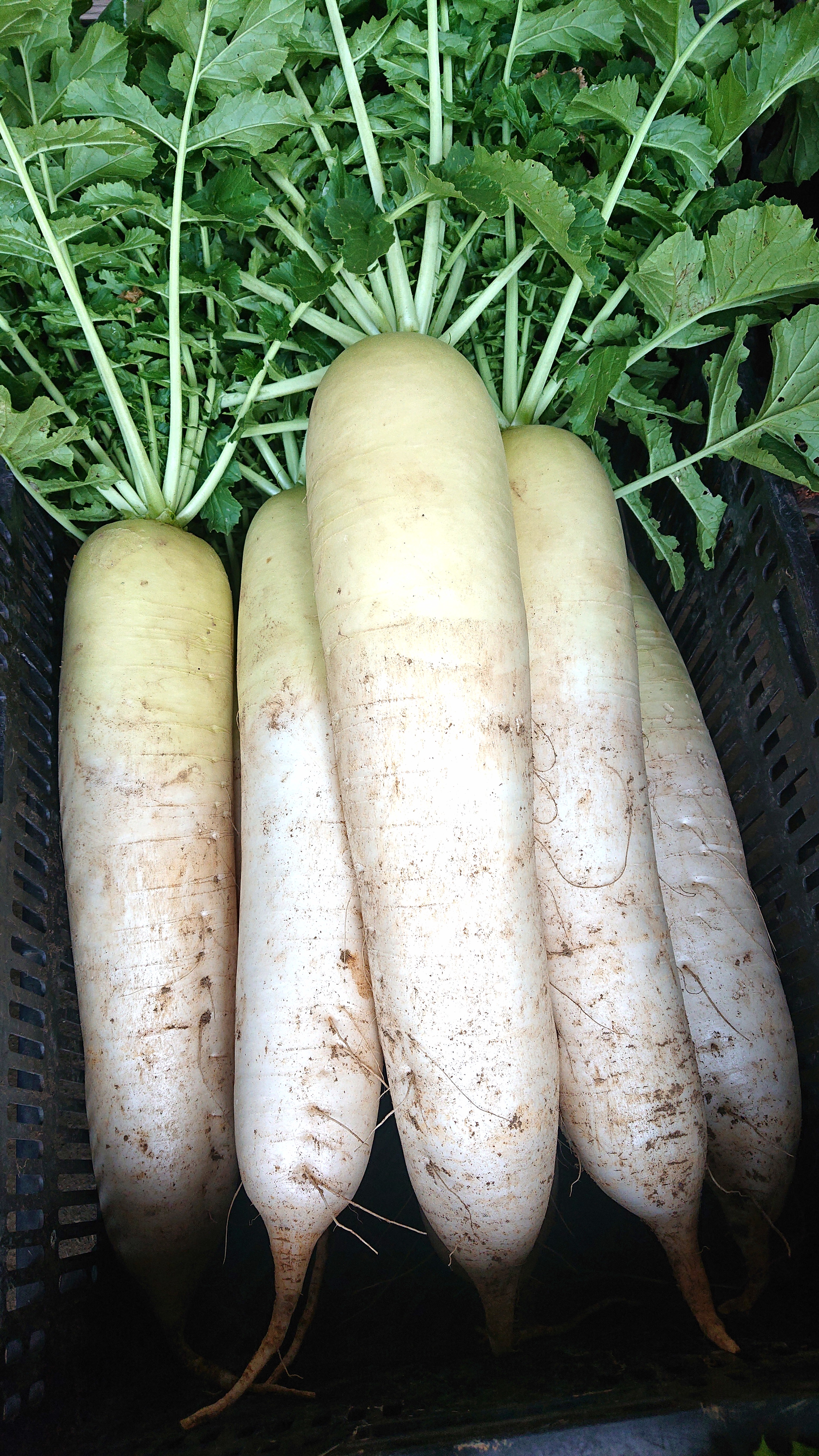 大根、白菜、ブロッコリー、水菜、ターサイ、人参、おふくろ大根、水菜、小松菜
