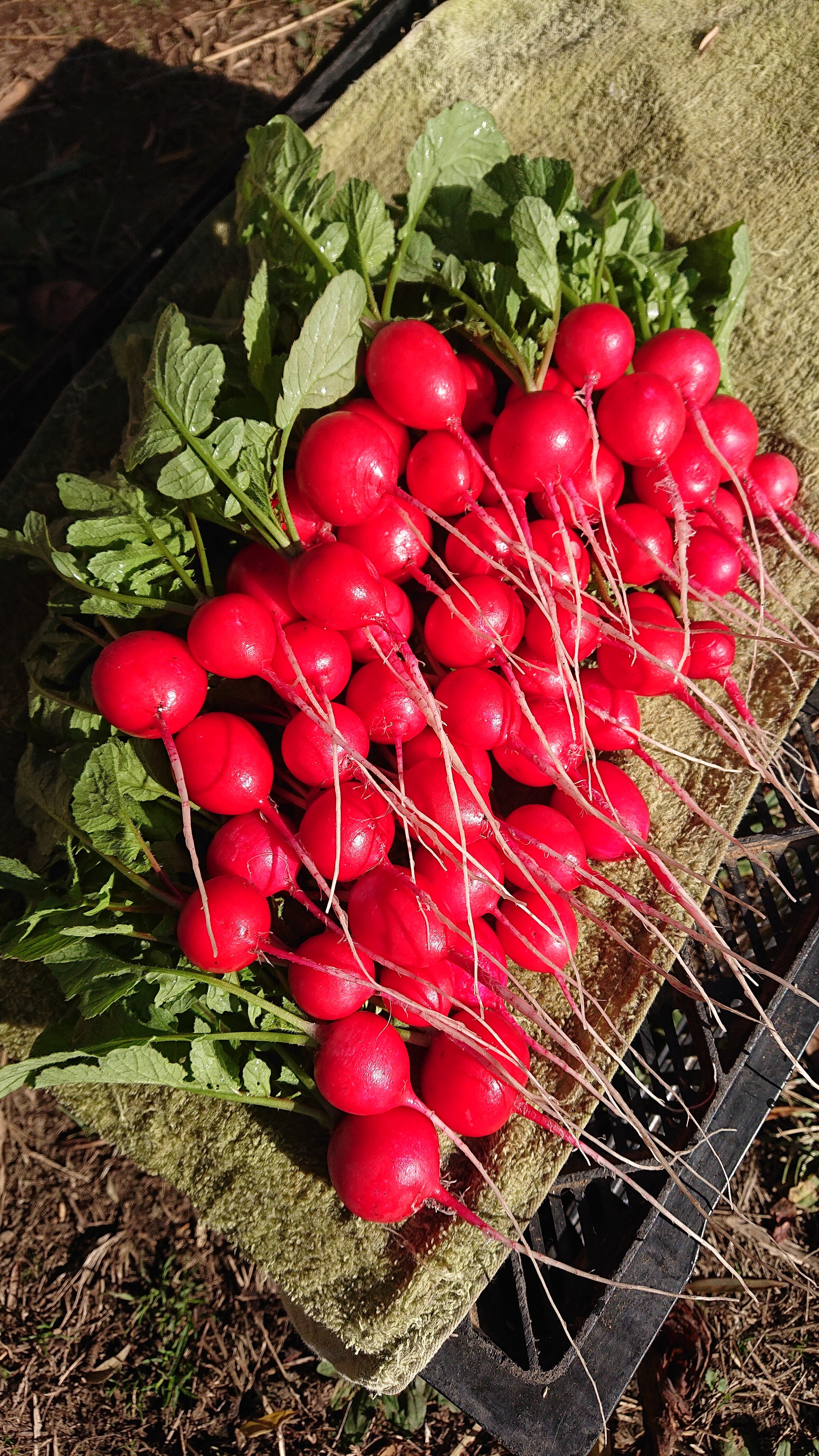 春菊、新玉ねぎ、赤玉ねぎ、ラディッシュ