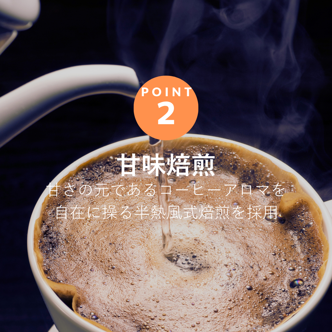 半熱風式焙煎でコーヒーのアロマを引き立たせ、苦みや酸味よりも