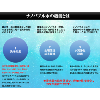 ナノバブルの強力な浸透力と酸化還元特性により、菌の繁殖を抑え、清潔な環境をキープ。