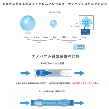 ナノサイズ(1μm未満)の気泡が、肌や物の表面の細かなすき間に入り込み、