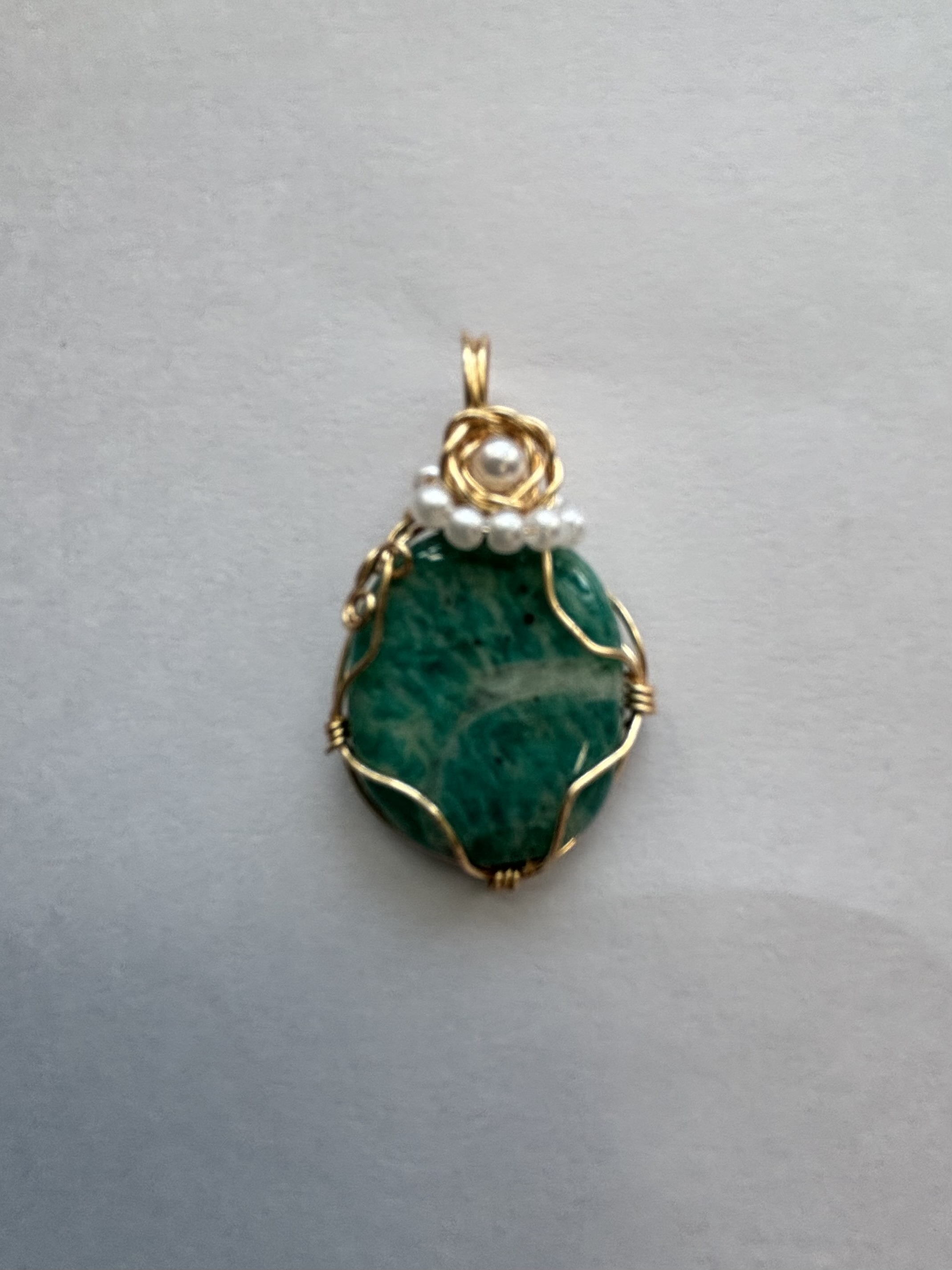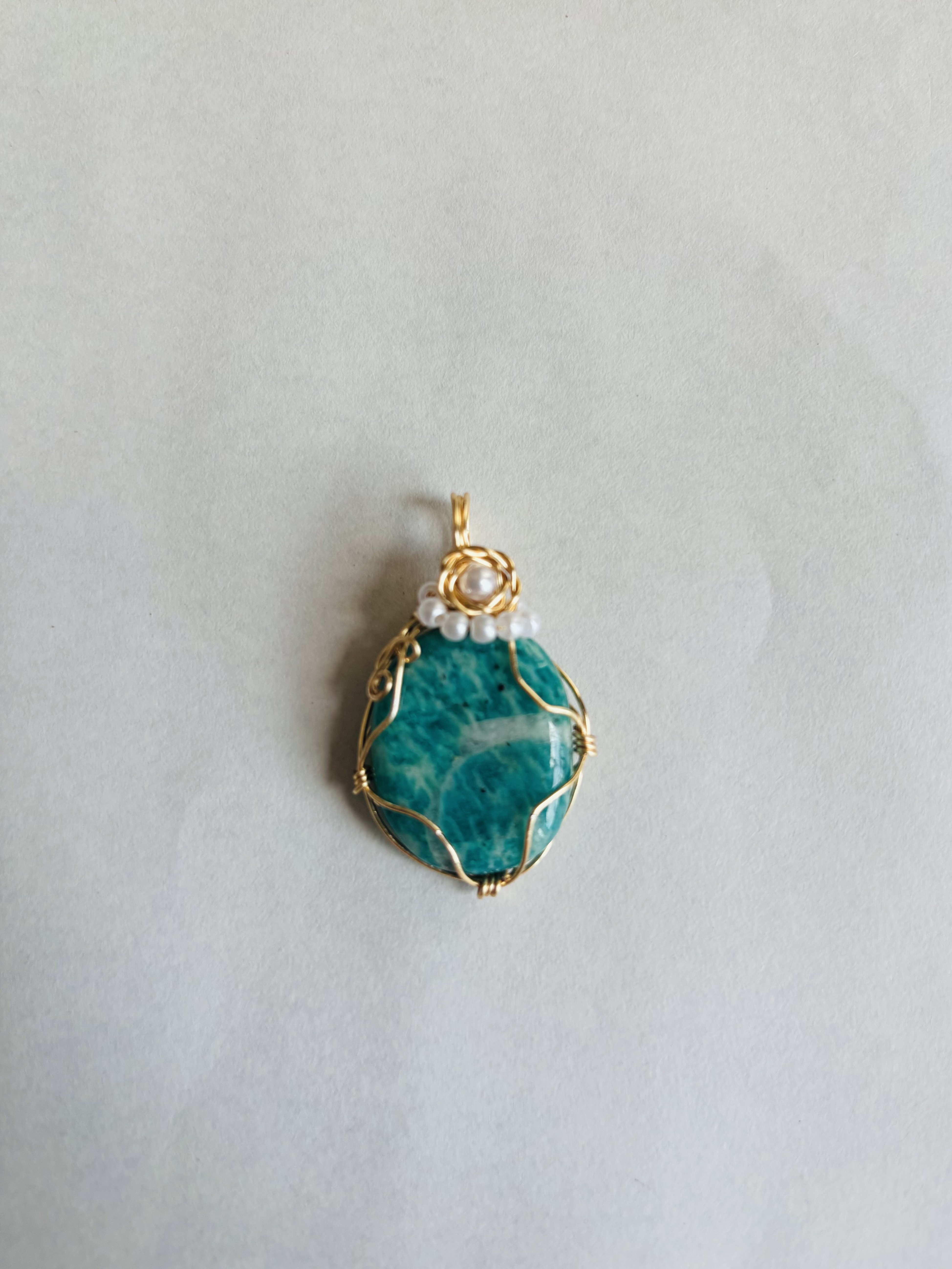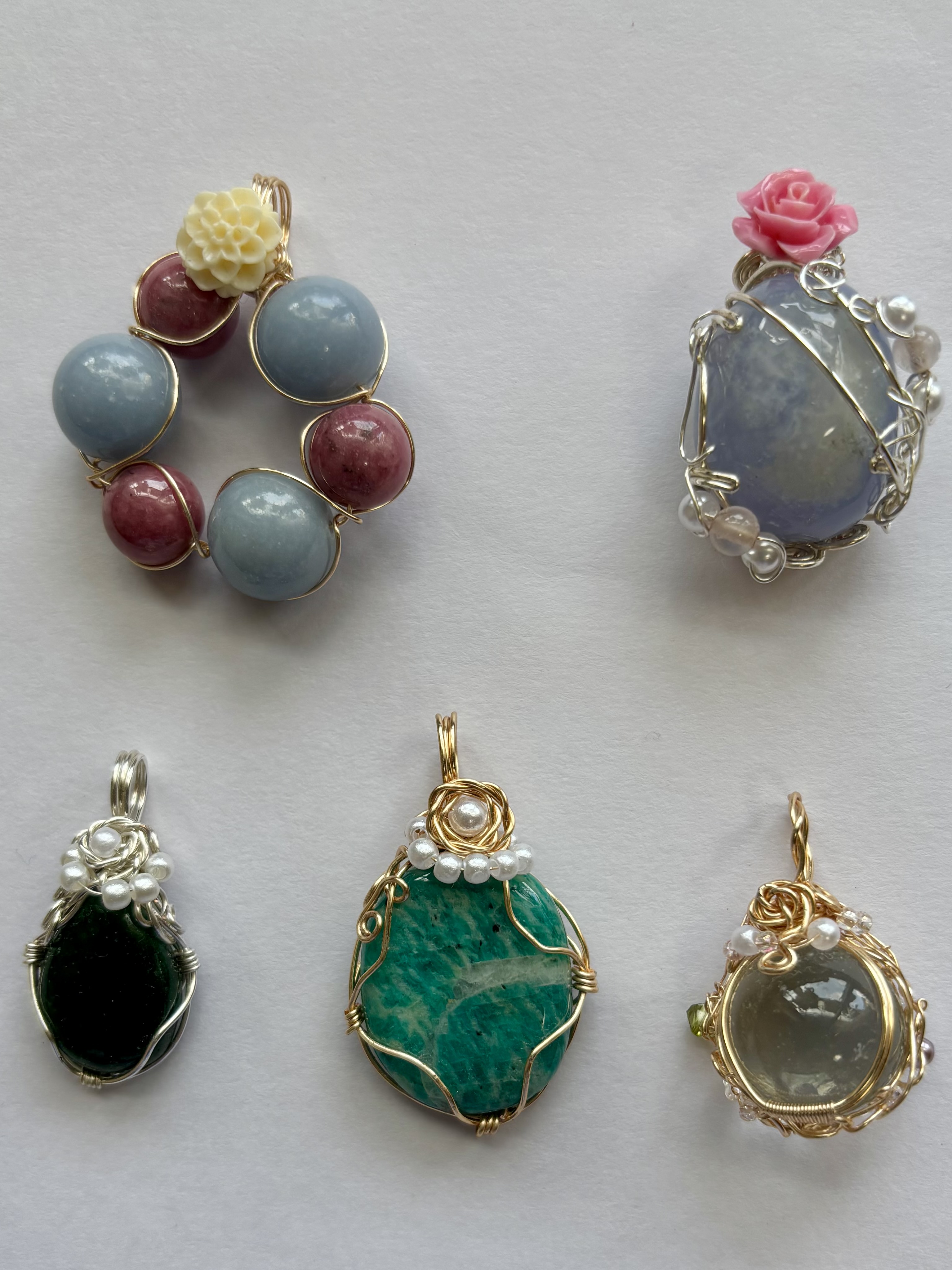 ■ ペンダントトップ金具:ワイヤーラップ仕上げ・ビーズでの装飾