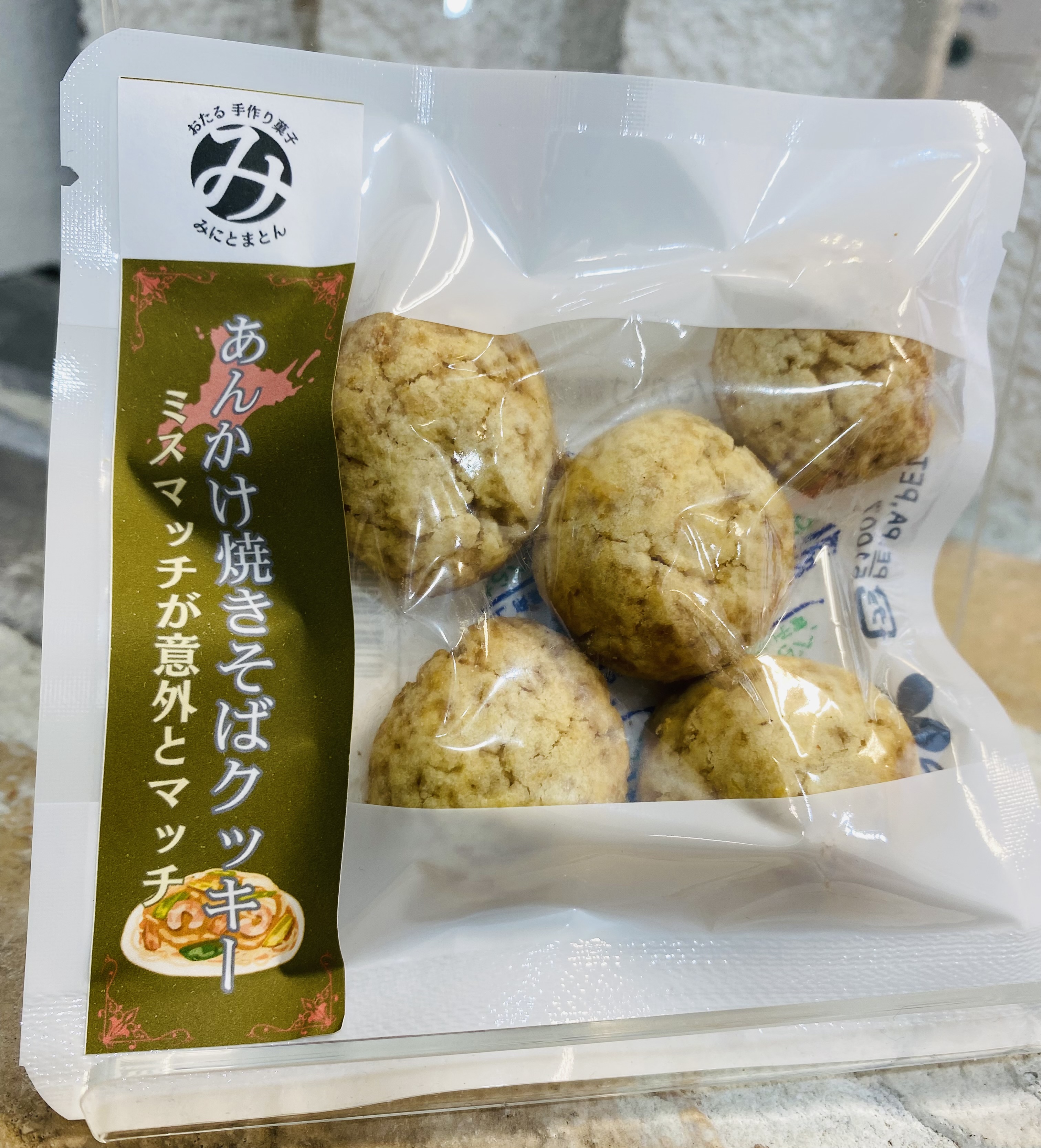 あんかけ焼きそばは小樽を代表するB級グルメです。タレをクッキー生地に練り込んで、焼く前に酢と生姜をからめています。あんかけ焼きそばを彷彿とさせるからこれまた不思議。小樽にきたらあんかけ焼きそばに海鮮食べて、産物食べて、地場のもの食べて。‥、あれ?このセットでコンプリートできちゃってる?笑