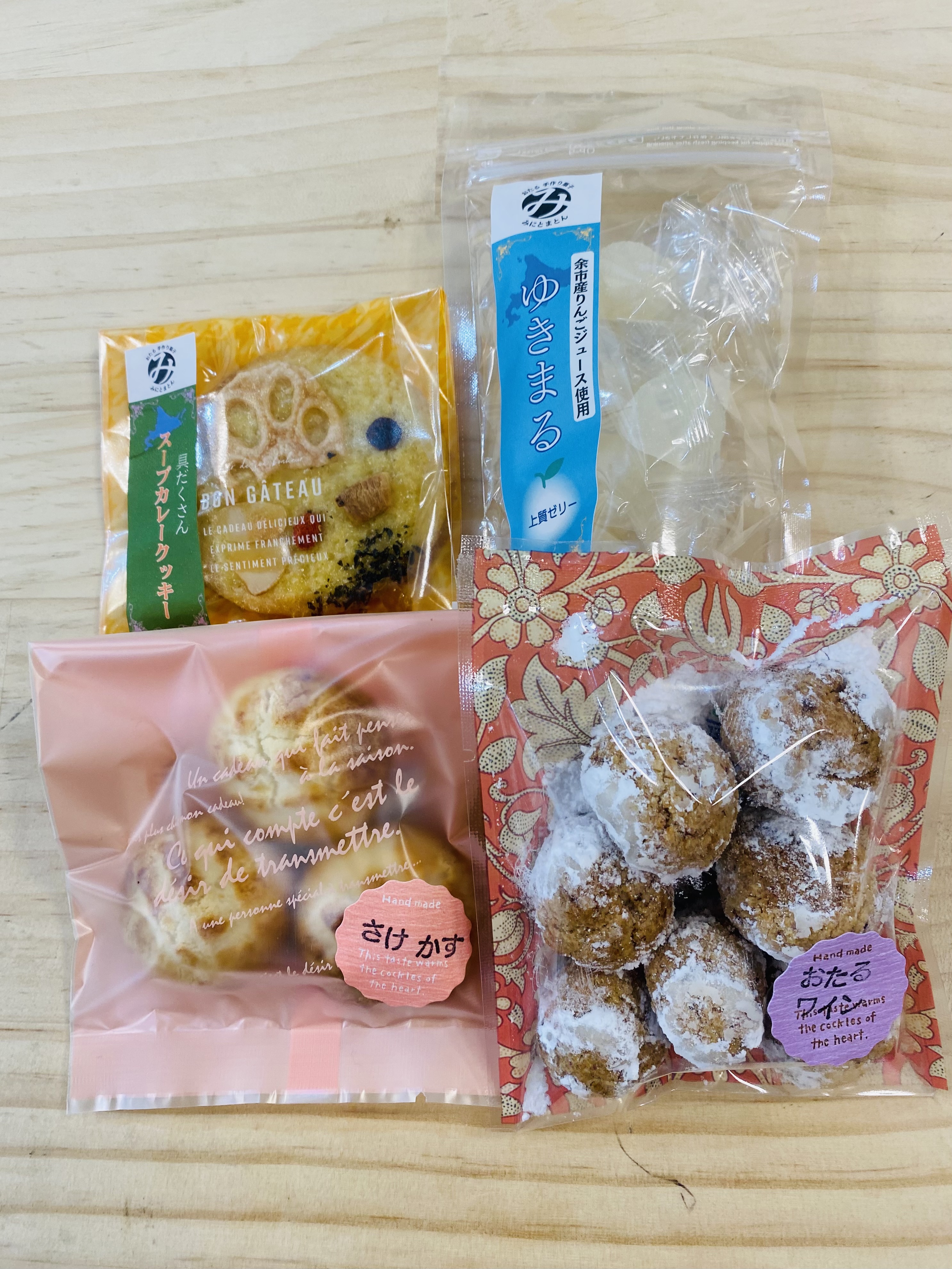 こちらはグミとは違う、柔らかいペクチンゼリーです。世間にはまだまだ浸透していないみたいで、「新食感」とも言えましょう。小樽のお隣、余市町のりんごジュースを使って、ミルキーアップル味に仕上げました。(乳不使用)絶対オススメ!
