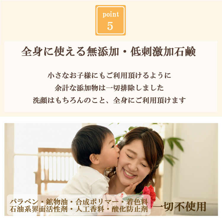 洗い上がりが突っ張らないので、肌の弱い方やお子様でも安心してお使いいただけます。