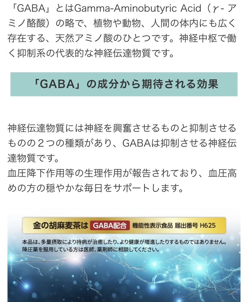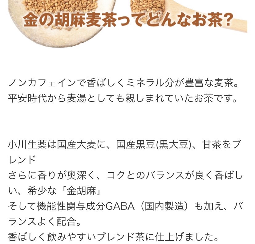 | 原材料名 | 大麦(国産)、黒豆[黒大豆(国産)]、金胡麻(トルコ、エジプト)、ギャバ(大麦由来) |