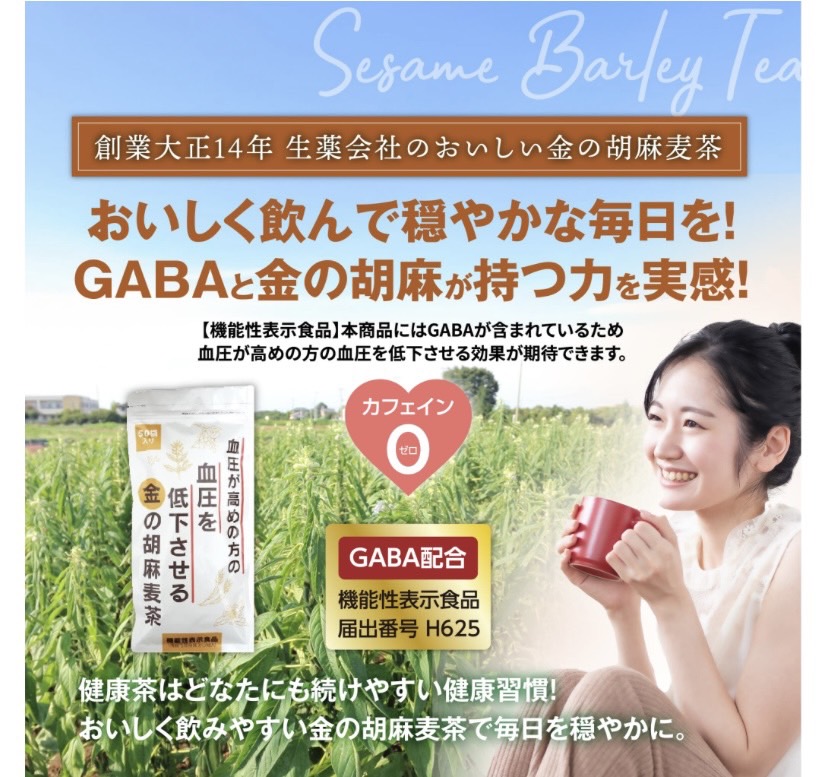 | 名称 | 血圧が高めの方の血圧を低下させる 金の胡麻麦茶Plus |