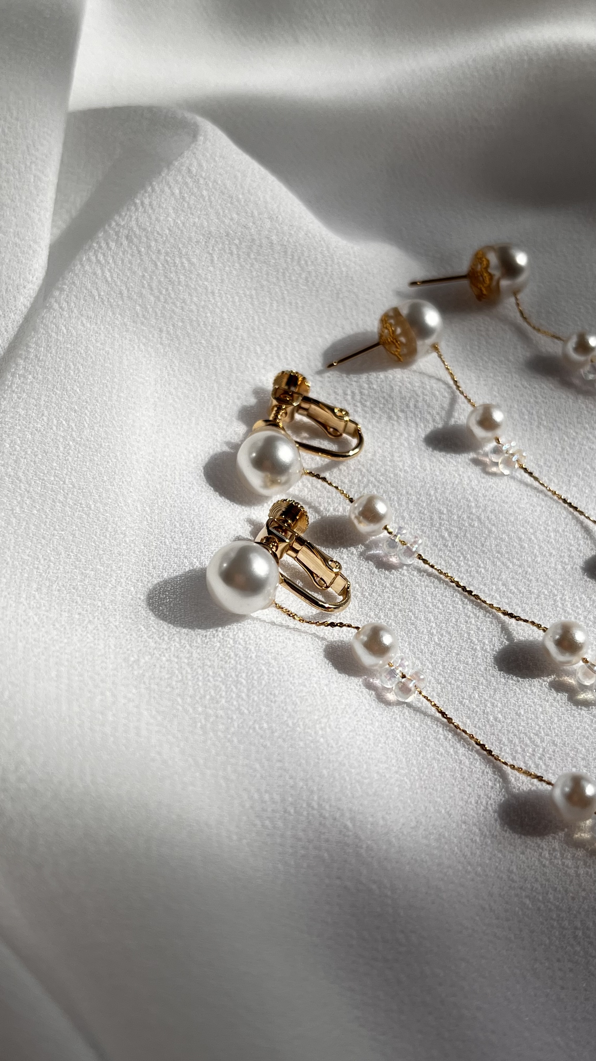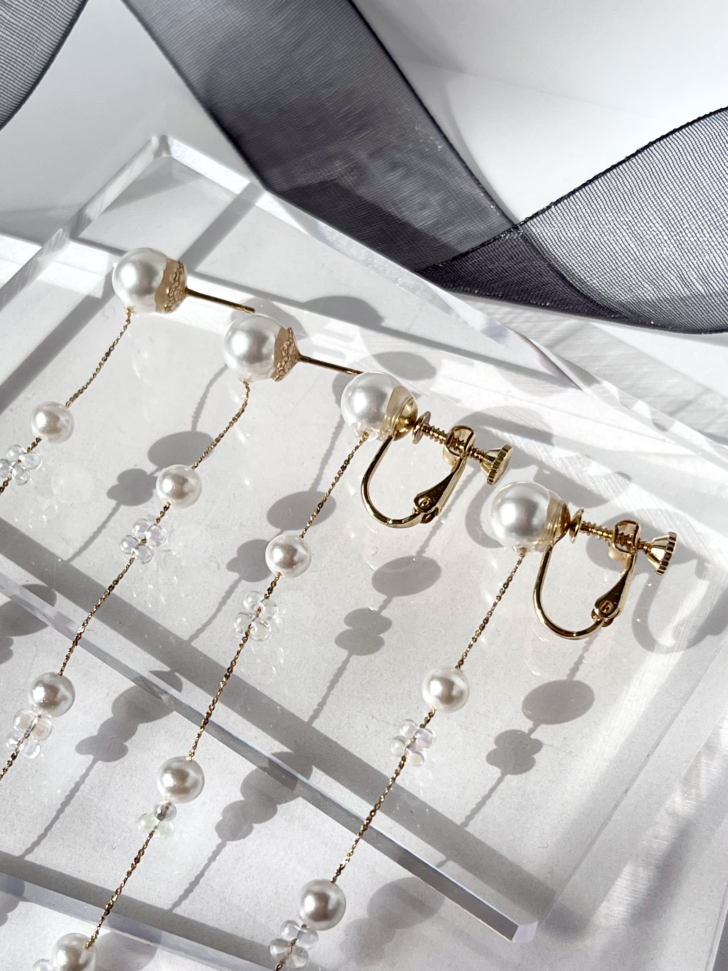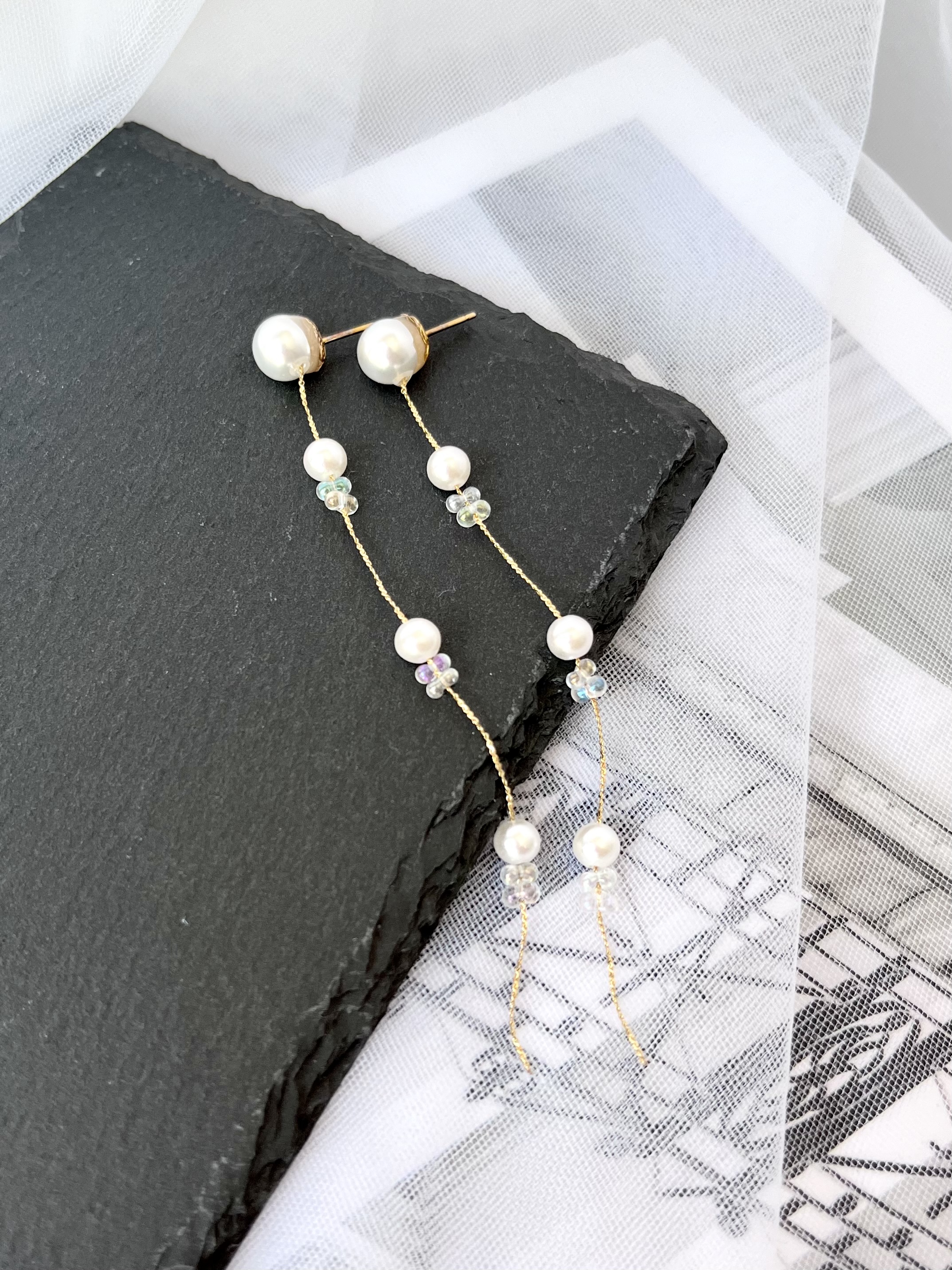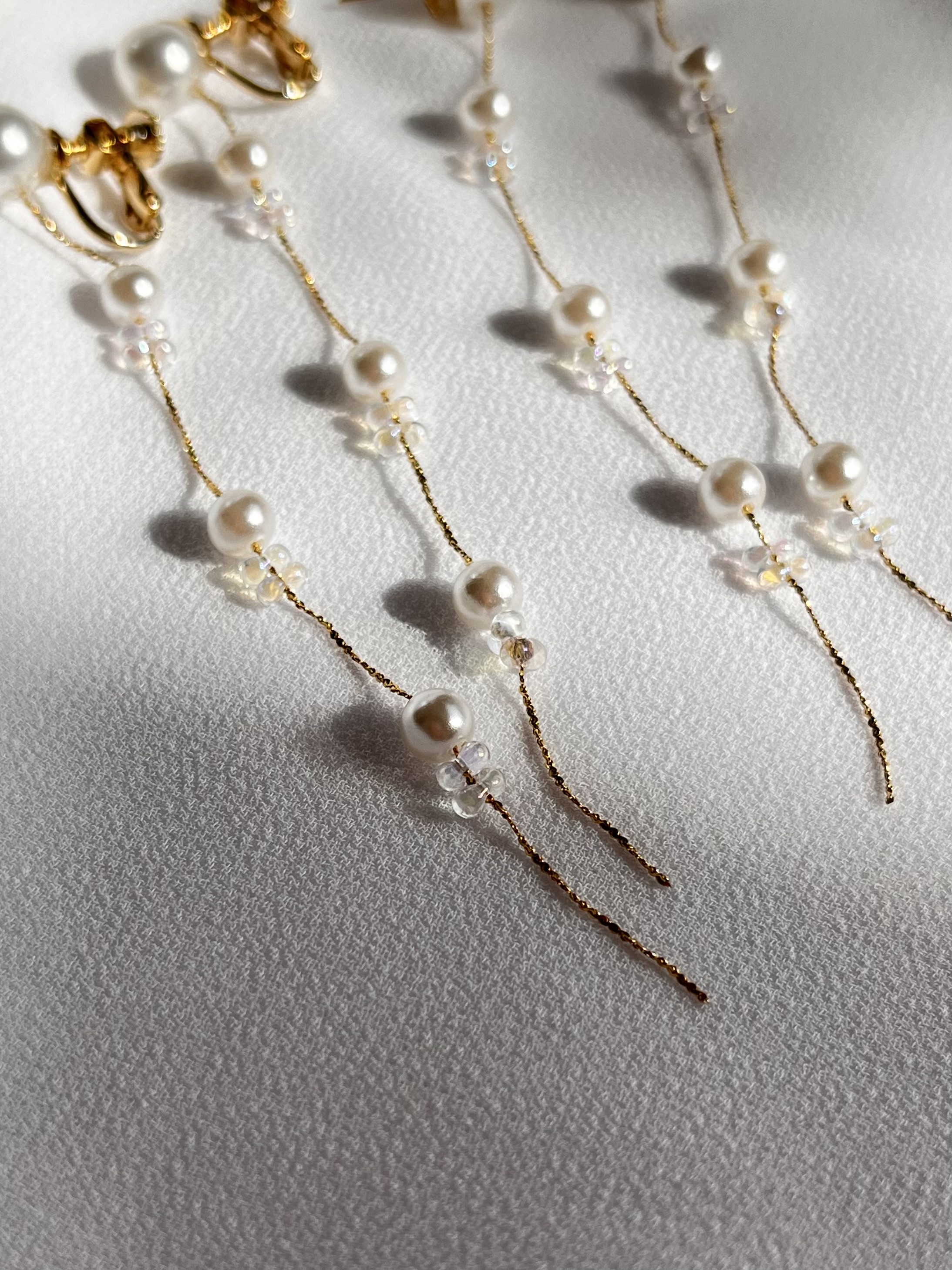 【人気No.3】zoom映え間違いなし❗️パール クリアビーズ 華奢 女性らしい 上品 ロングピアス ロングイヤリング【ピアス•イヤリング】