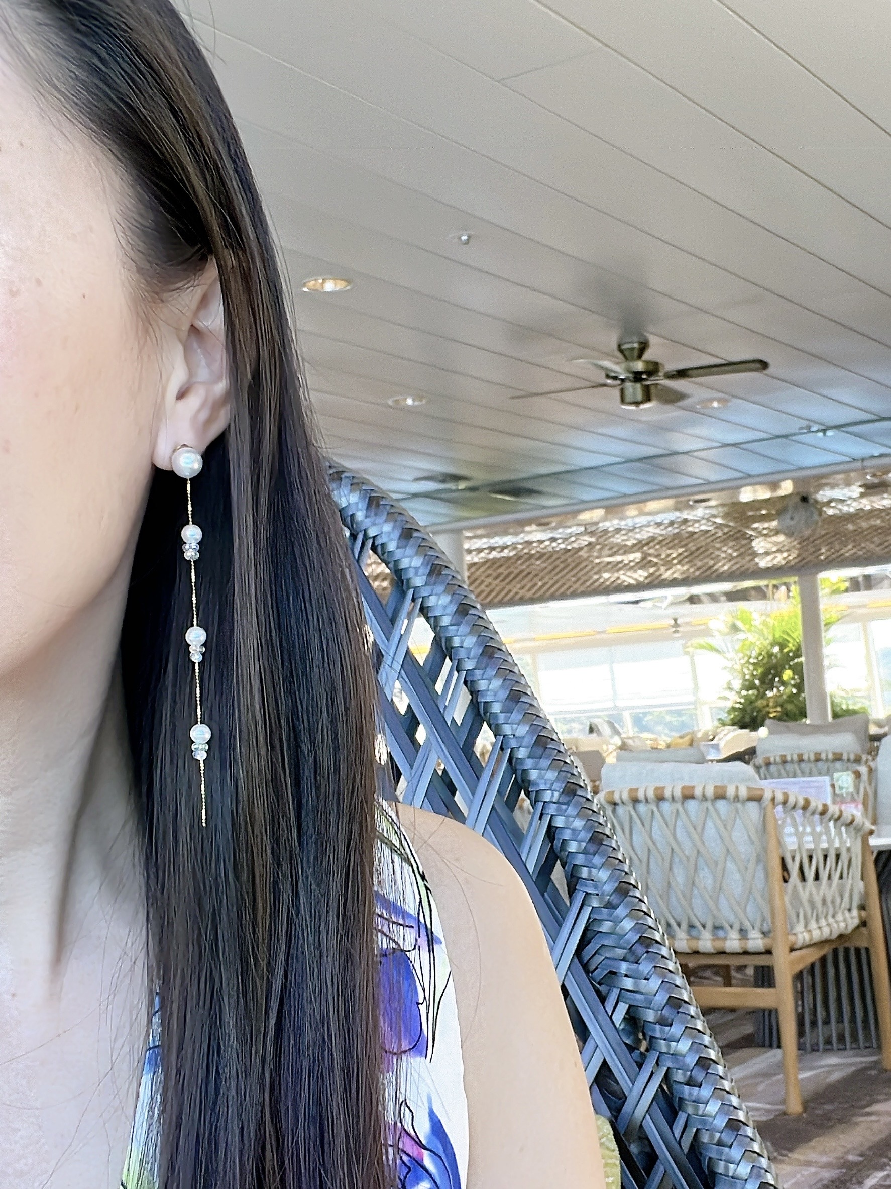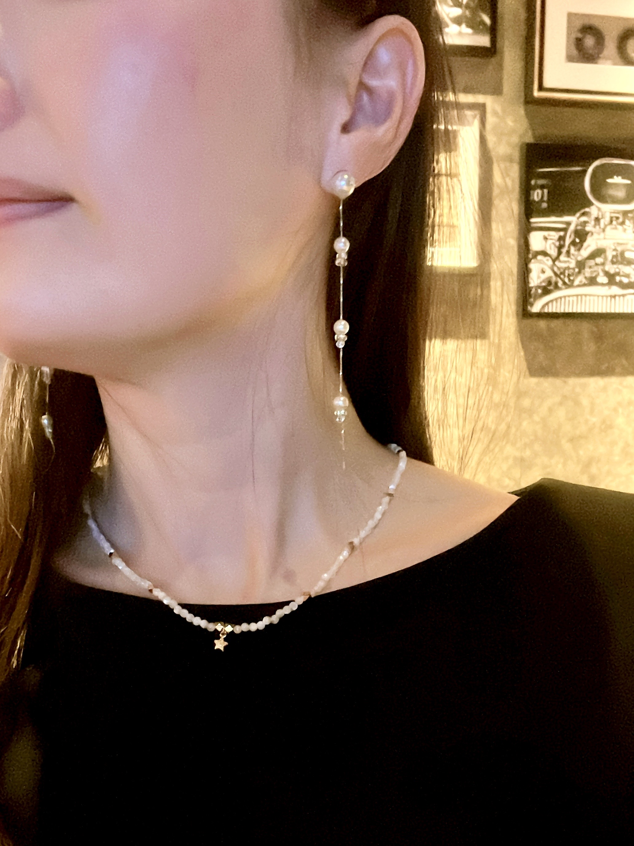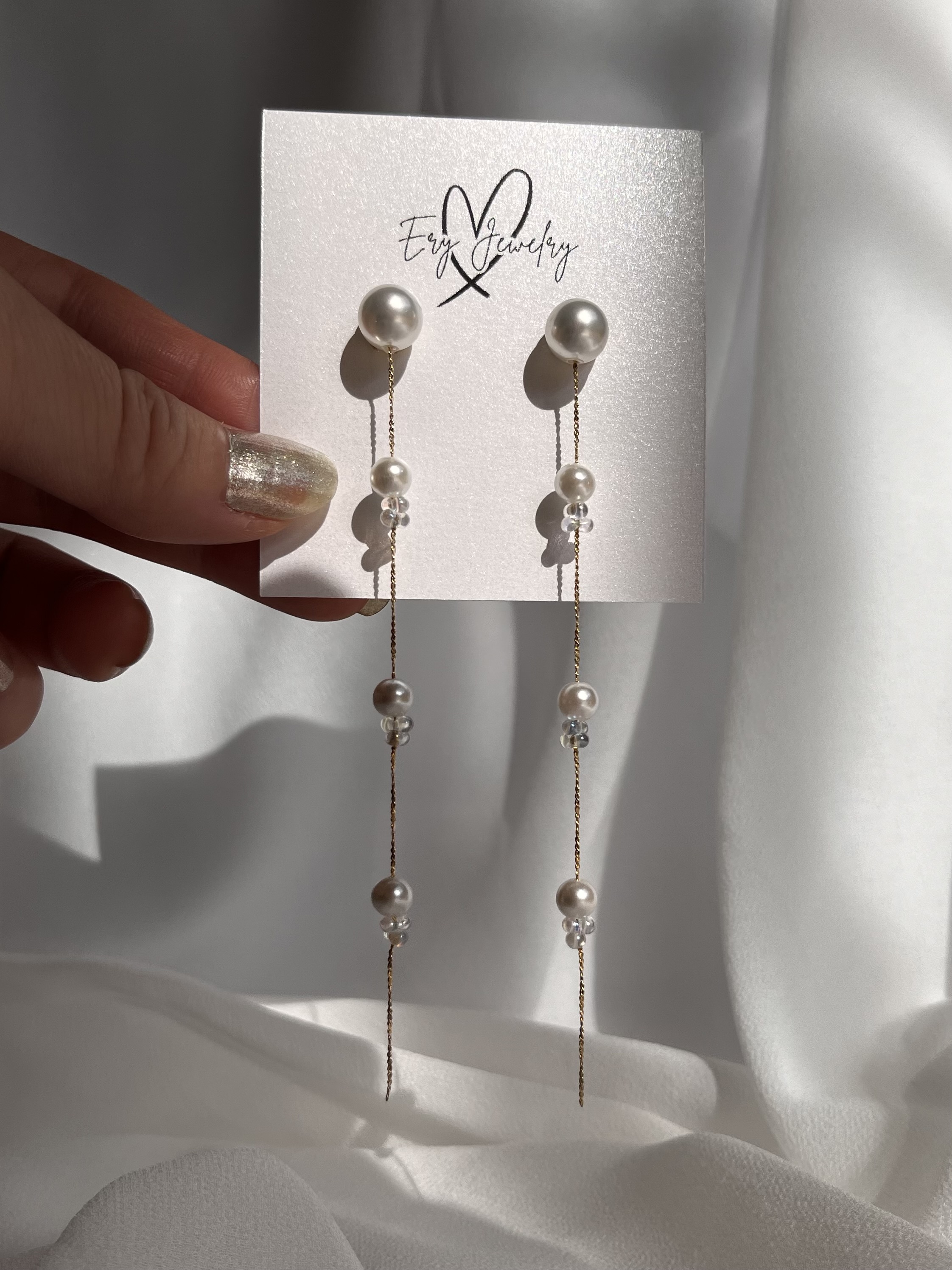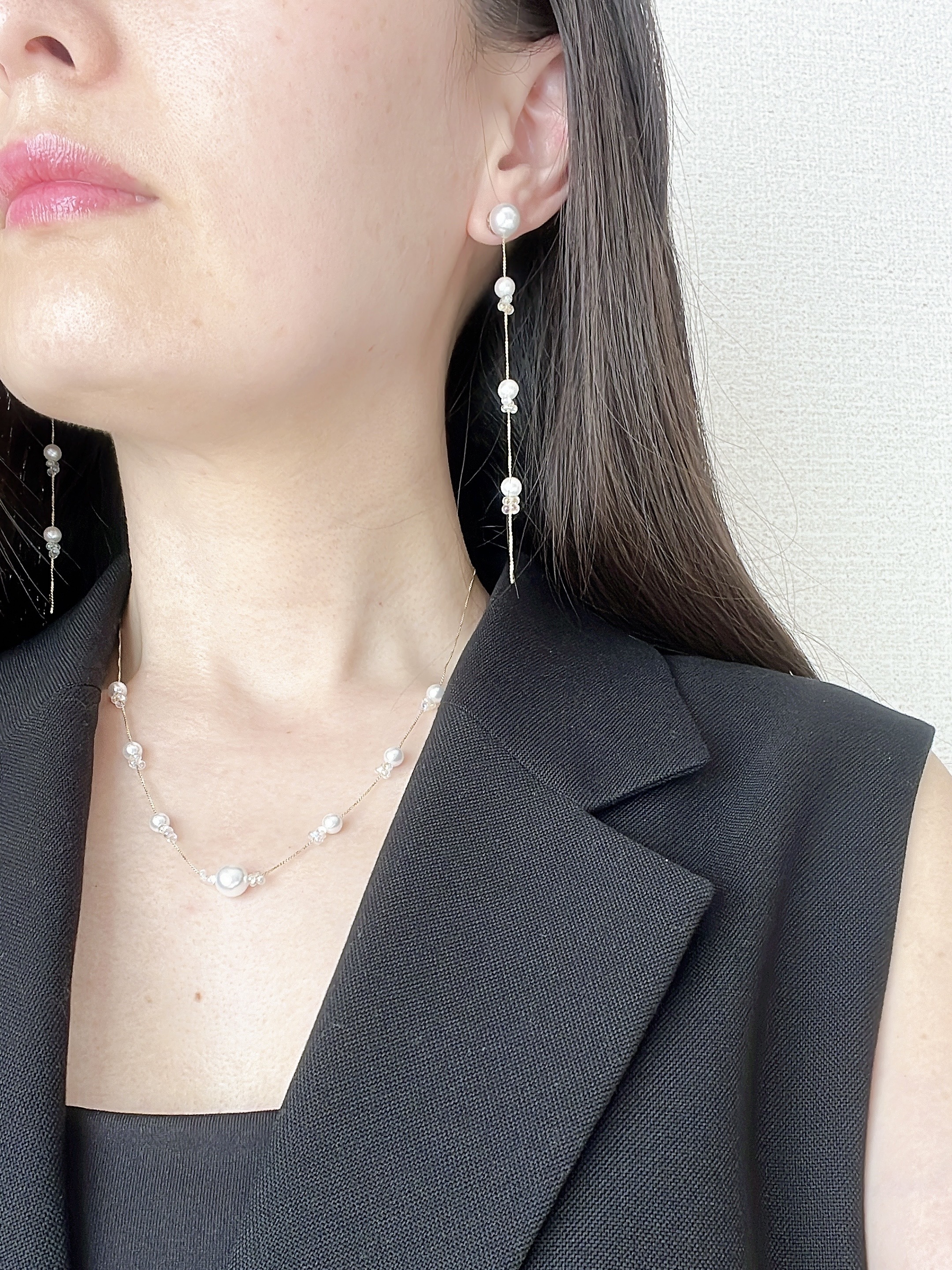 【人気No.3】zoom映え間違いなし❗️パール クリアビーズ 華奢 女性らしい 上品 ロングピアス ロングイヤリング【ピアス•イヤリング】