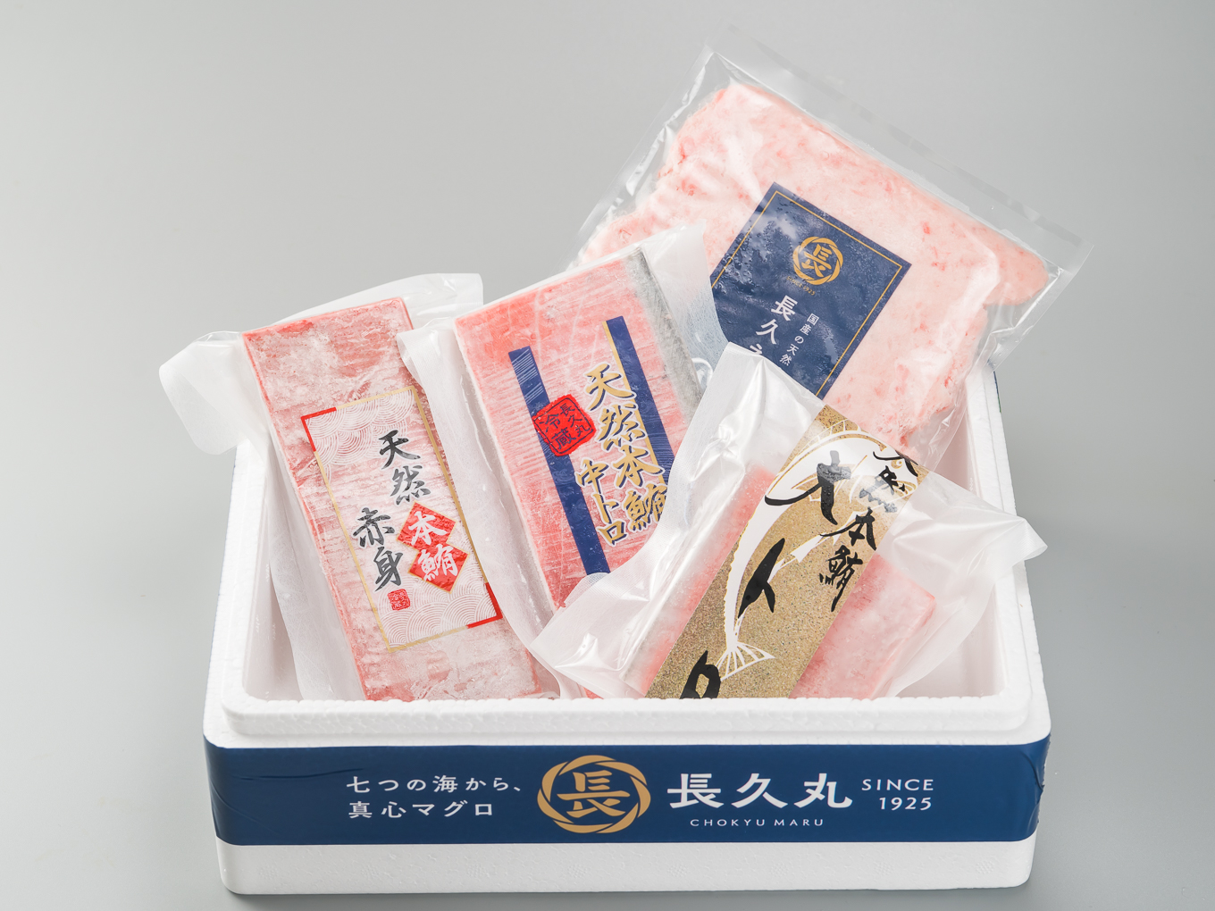 太平洋、インド洋などで1年以上かけ延縄漁で、漁獲後急速冷凍した天然マグロです。