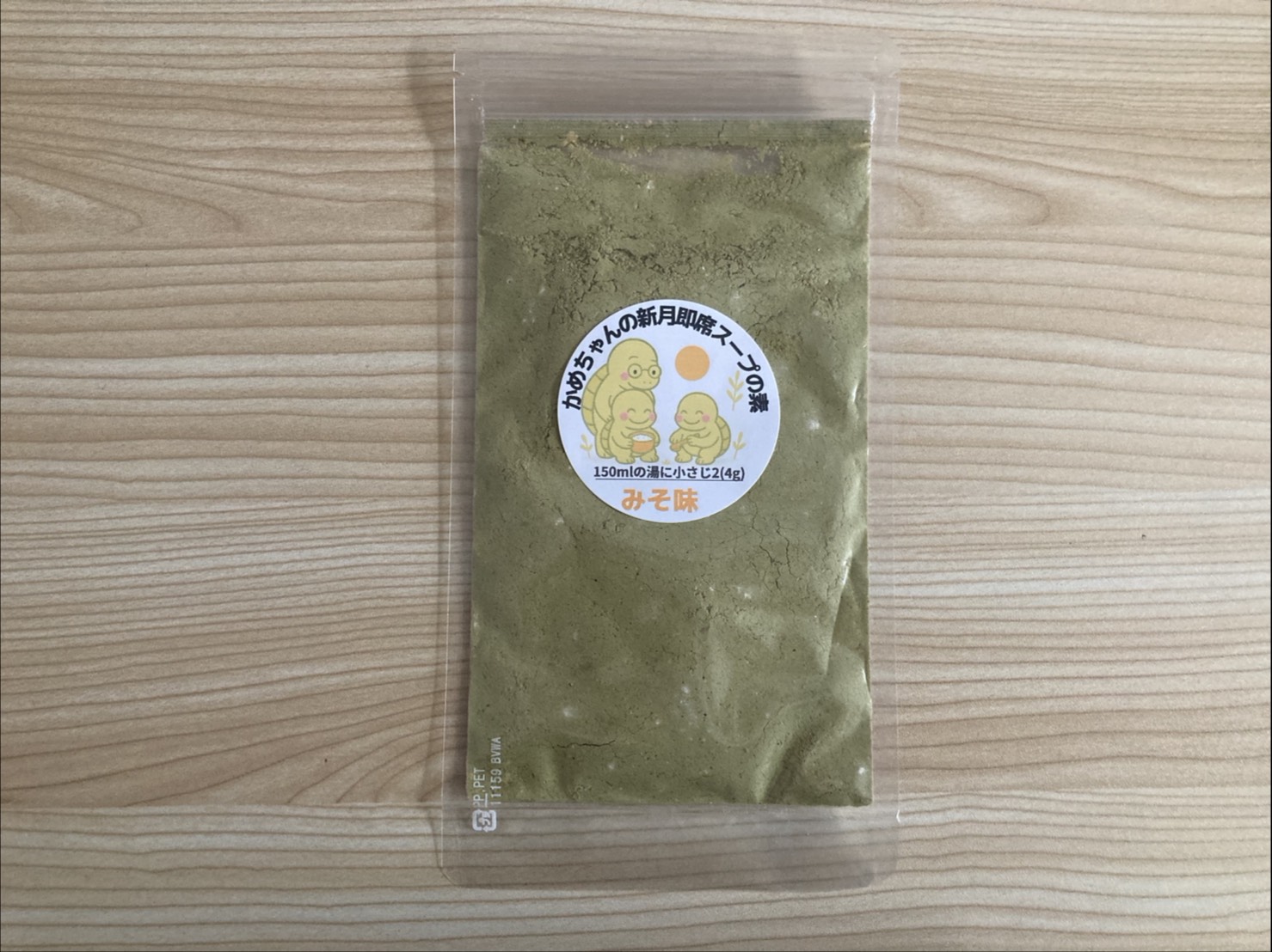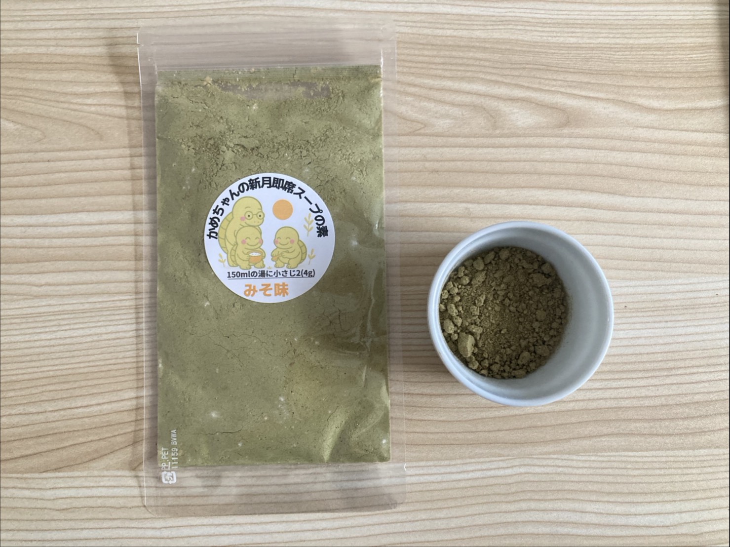炊塩(海水(福岡県産)),白味噌粉末(米味噌(米麹(国産米),大豆(国産),食塩)),いりこ粉末(かたくちいわし(愛媛県産)),麦白味噌粉末(麦味噌(大豆,麦麹,食塩,)澱粉),2倍麹味噌粉末(米麹(国産米),大豆(国産),食塩),白味噌粉末(米味噌(米麹(国産米),大豆(国産),食塩)),有機麻の実粉末(カナダ),れんこん粉末(れんこん(国産)),ごぼう粉末(ごぼう(国産)),人参粉末(人参(国産)),小松菜粉末(小松菜(国産)),かつおの枯れ節(鹿児島製造),ラウス昆布粉末(えながおに昆布(羅臼産))(原材料の一部に大豆を含む)